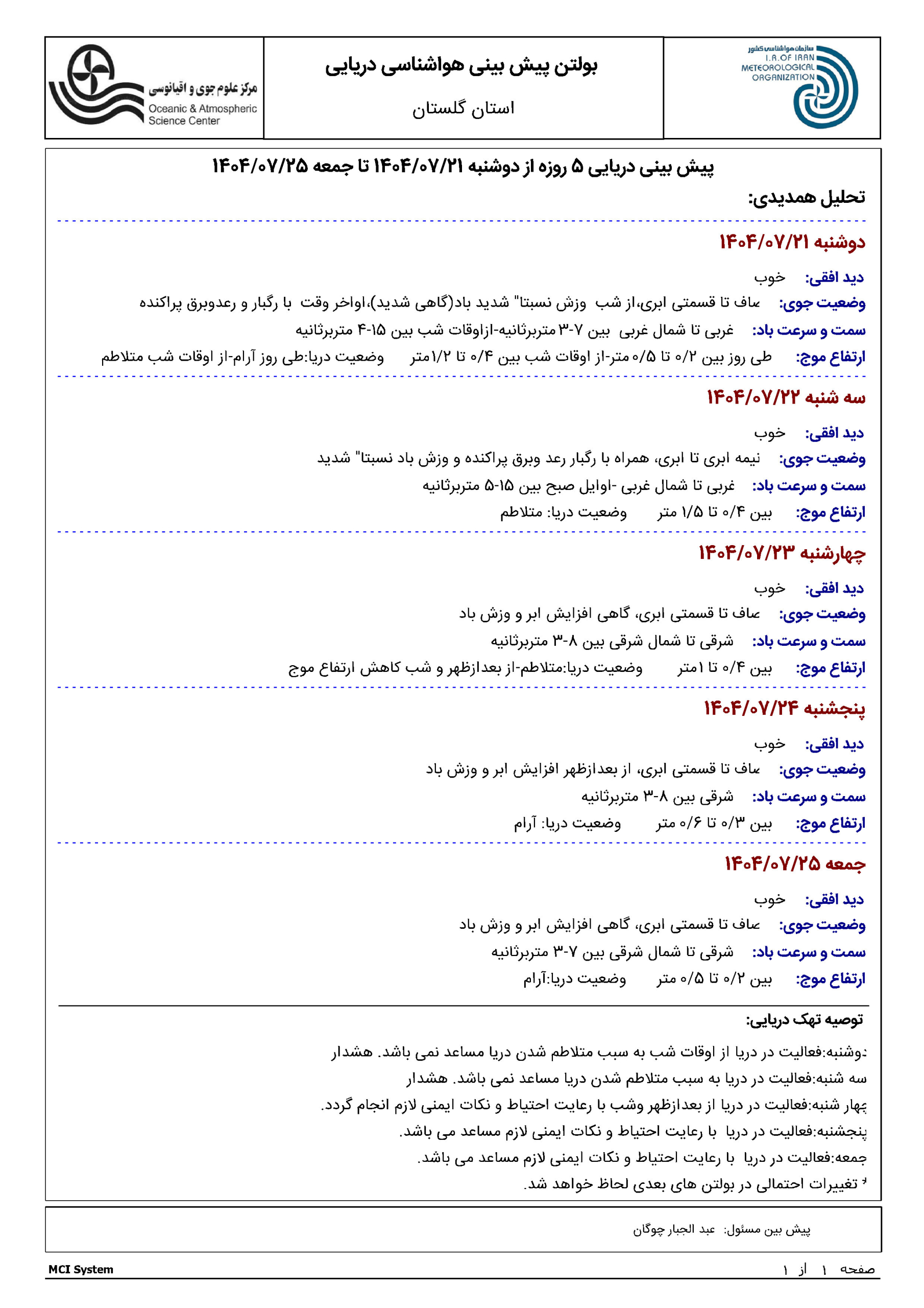 - پیام تبریک مدیرکل هواشناسی استان گلستان به مناسبت هفته دفاع مقدس2 مهر 1404 - 8:41 ق.ظ