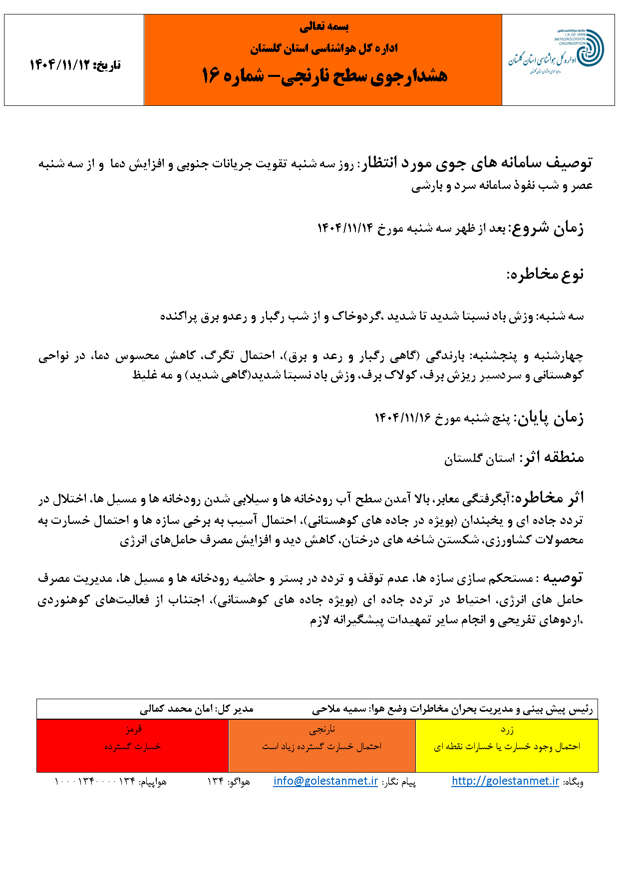 نشست کارگروه منطقهای هواشناسی کشور به میزبانی استان گلستان برگزار شد17 آذر 1404 - 10:54 ق.ظ