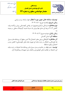 - هشدار هواشناسی جوی سطح نارنجی شماره 10 مورخ 1404/08/066 آبان 1404 - 12:23 ق.ظ