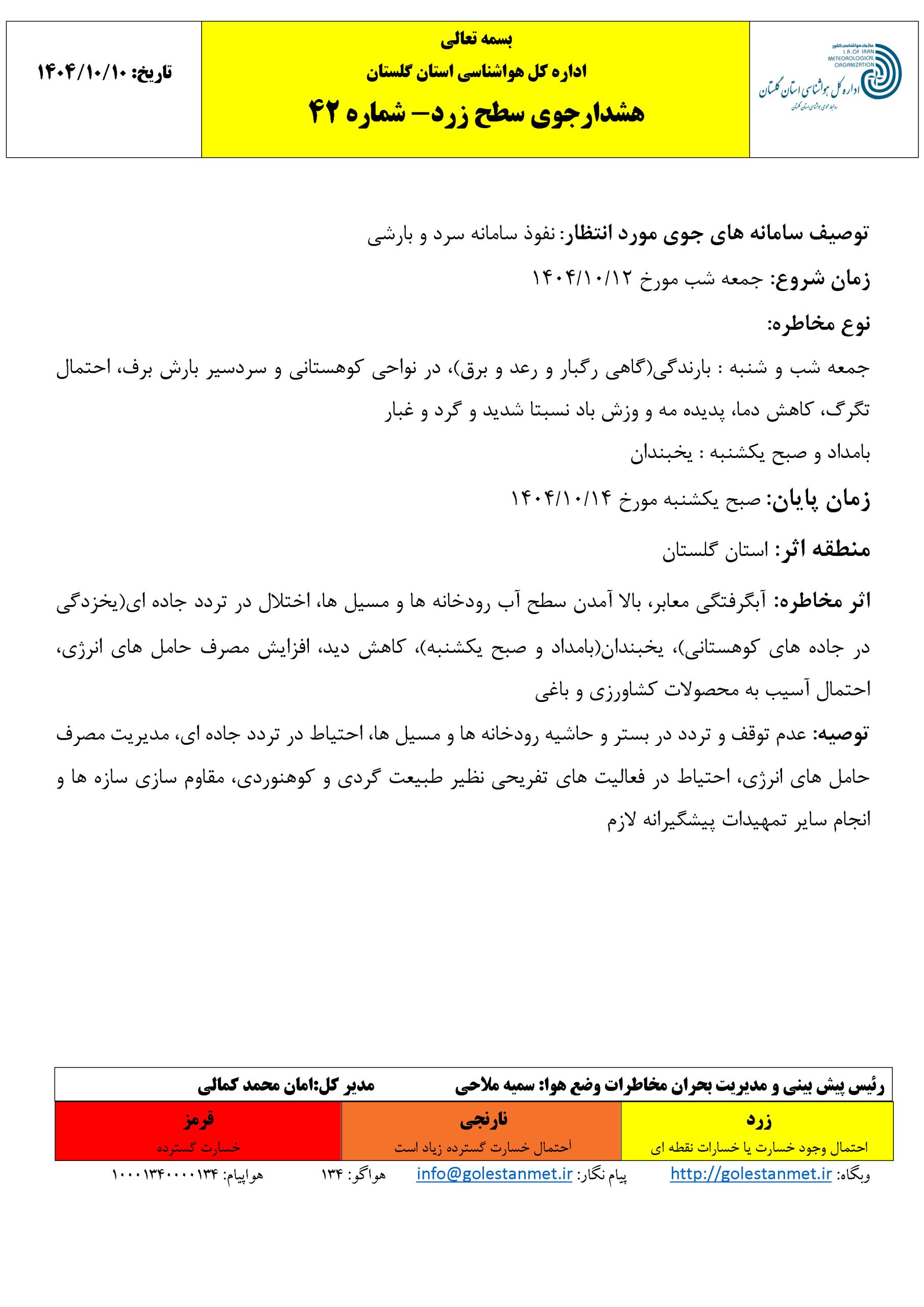 گلستان- گرگان- میدان بسیج- سایت اداری – مرکز تحقیقات هواشناسی کاربردی استان