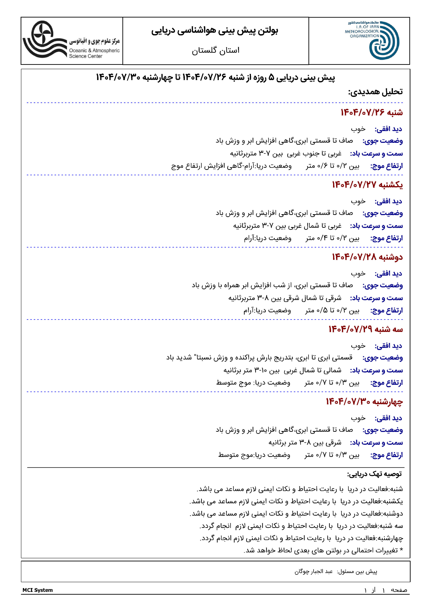 گلستان- گرگان- میدان بسیج- سایت اداری – مرکز تحقیقات هواشناسی کاربردی استان