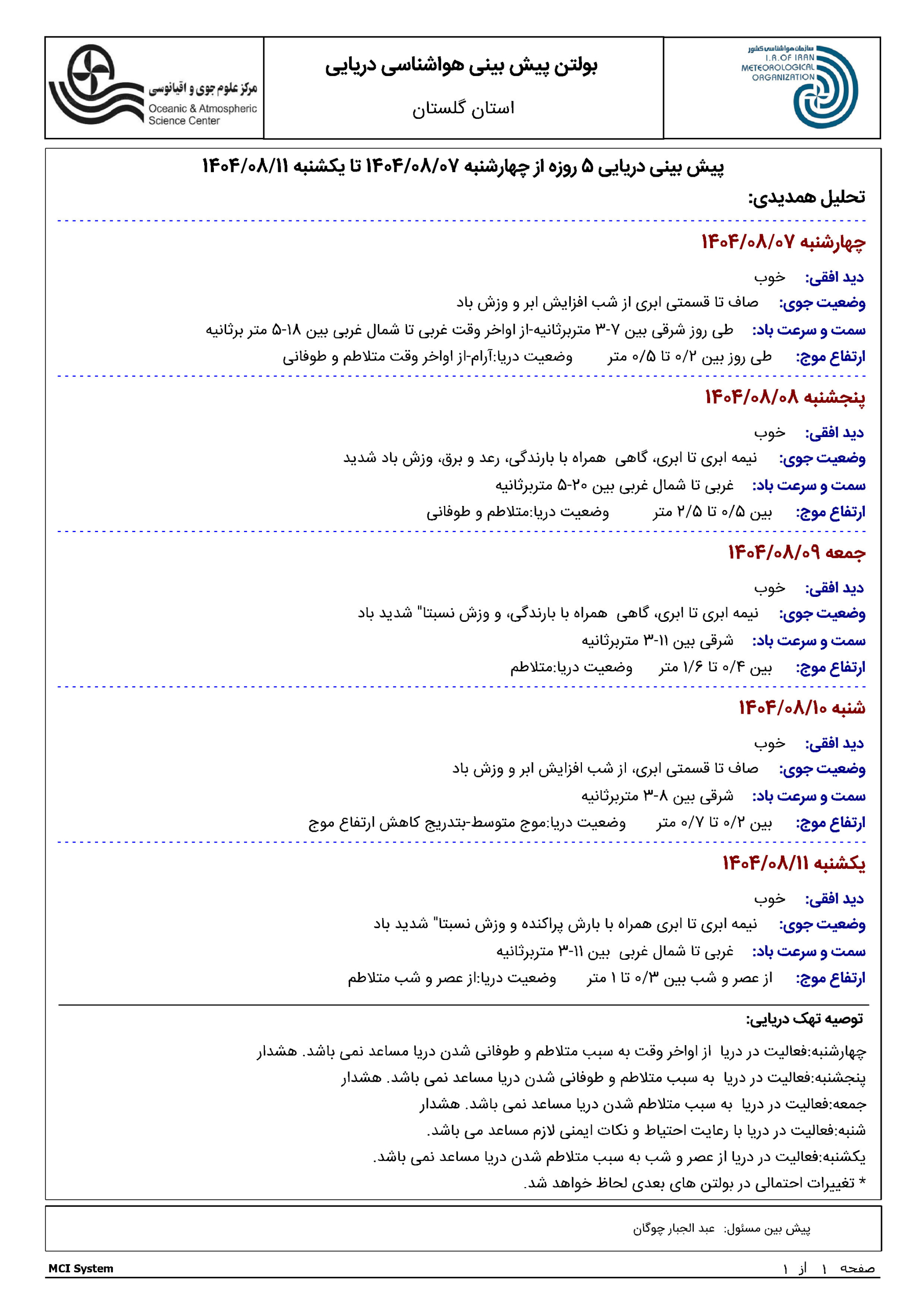 - هشدار هواشناسی جوی سطح نارنجی شماره 10 مورخ 1404/08/066 آبان 1404 - 12:23 ق.ظ