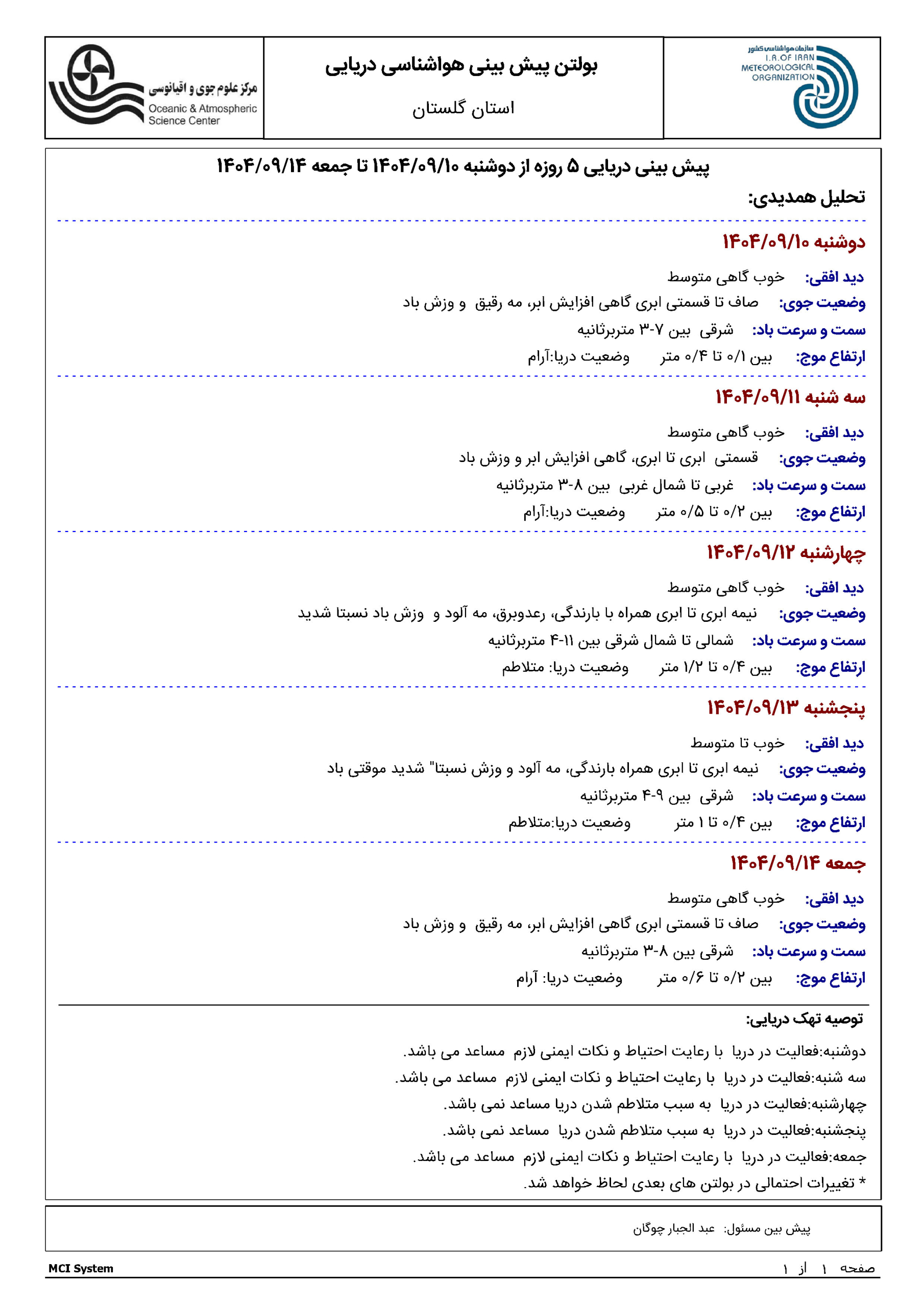 گلستان- گرگان- میدان بسیج- سایت اداری – مرکز تحقیقات هواشناسی کاربردی استان