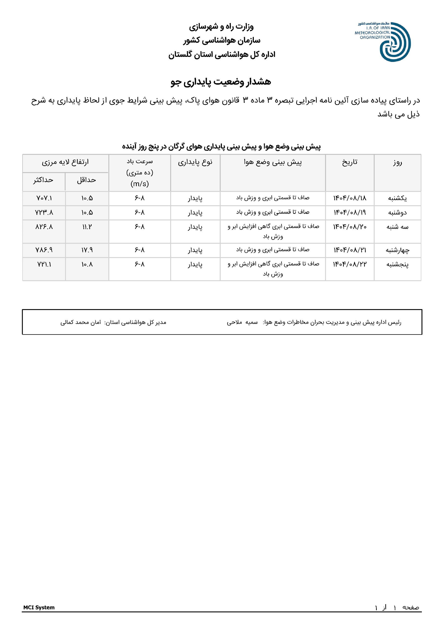 گلستان- گرگان- میدان بسیج- سایت اداری – مرکز تحقیقات هواشناسی کاربردی استان