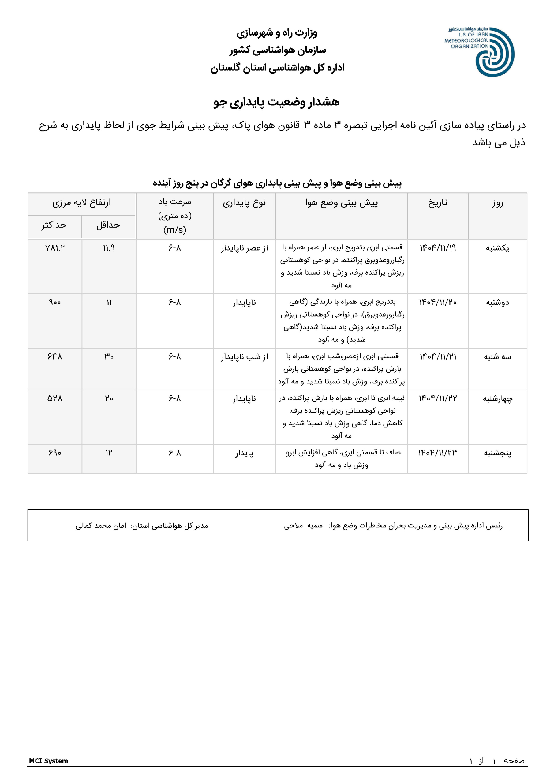 نشست کارگروه منطقهای هواشناسی کشور به میزبانی استان گلستان برگزار شد17 آذر 1404 - 10:54 ق.ظ