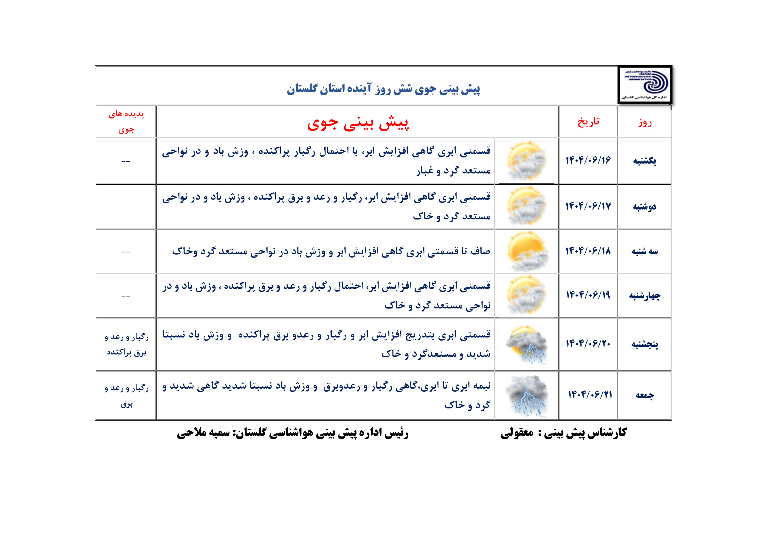پیش بینی 6 روزه مورخ 1404/06/16