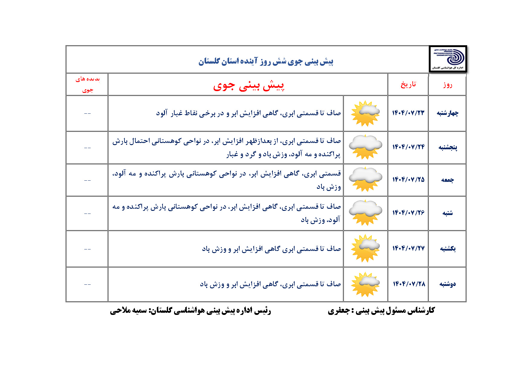 پیش بینی 6 روزه مورخ 1404/07/23