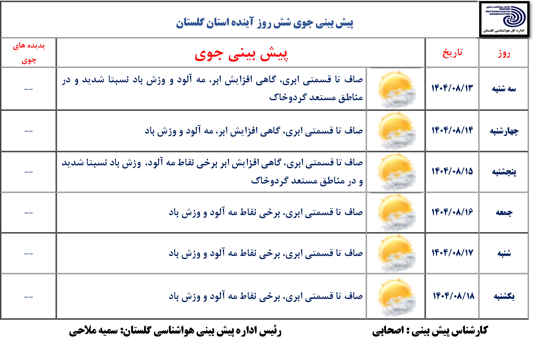 پیش بینی 6 روزه مورخ 1404/08/13