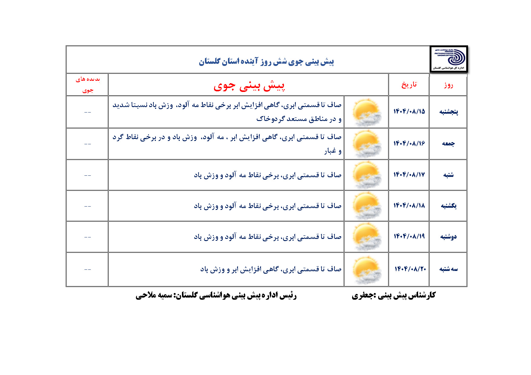 - هشدار هواشناسی جوی سطح نارنجی شماره 10 مورخ 1404/08/066 آبان 1404 - 12:23 ق.ظ