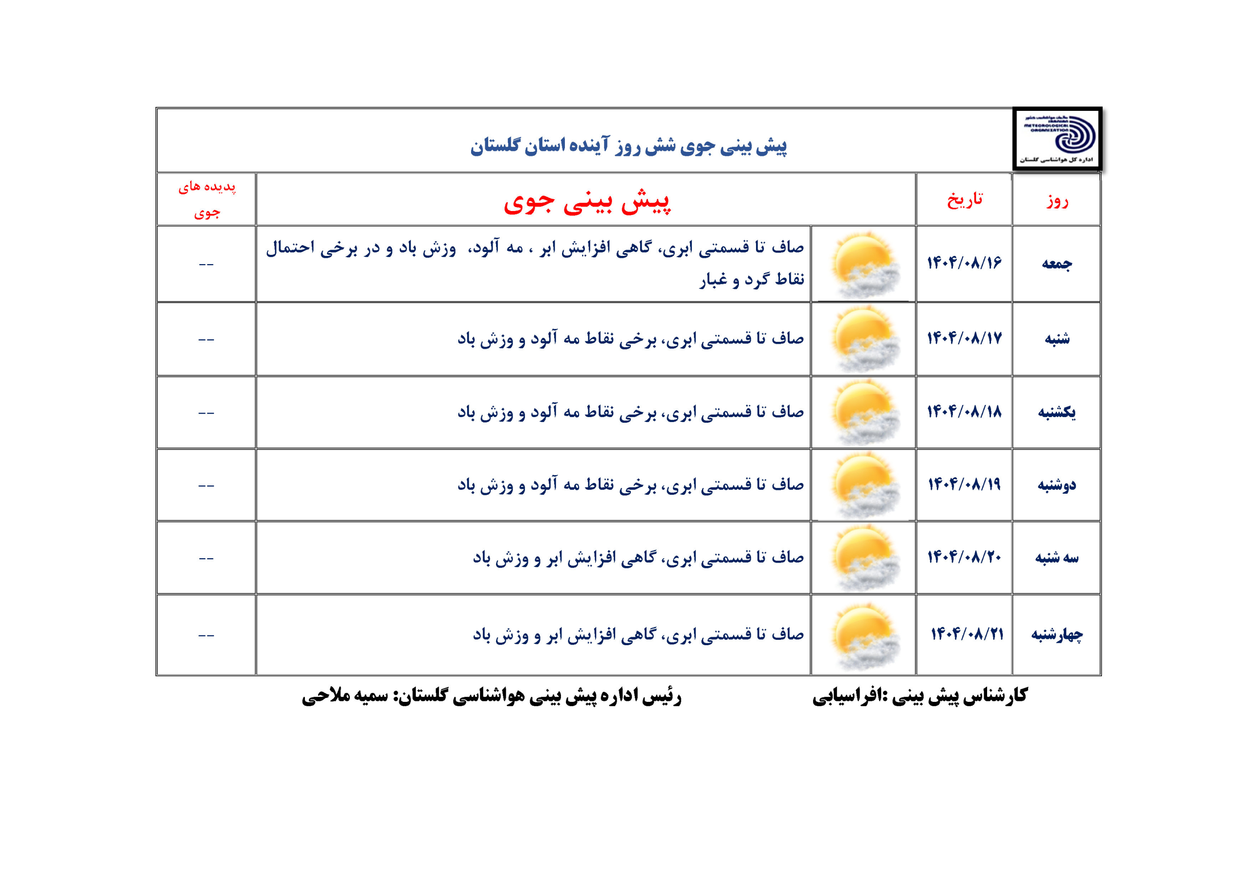 - هشدار هواشناسی جوی سطح نارنجی شماره 10 مورخ 1404/08/066 آبان 1404 - 12:23 ق.ظ