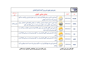 کاهش ۱۸ درصدی بارشهای پاییزی در استان گلستان نسبت به دوره بلندمدت18 آبان 1404 - 1:09 ب.ظ- هشدار هواشناسی جوی سطح نارنجی شماره 10 مورخ 1404/08/066 آبان 1404 - 12:23 ق.ظ