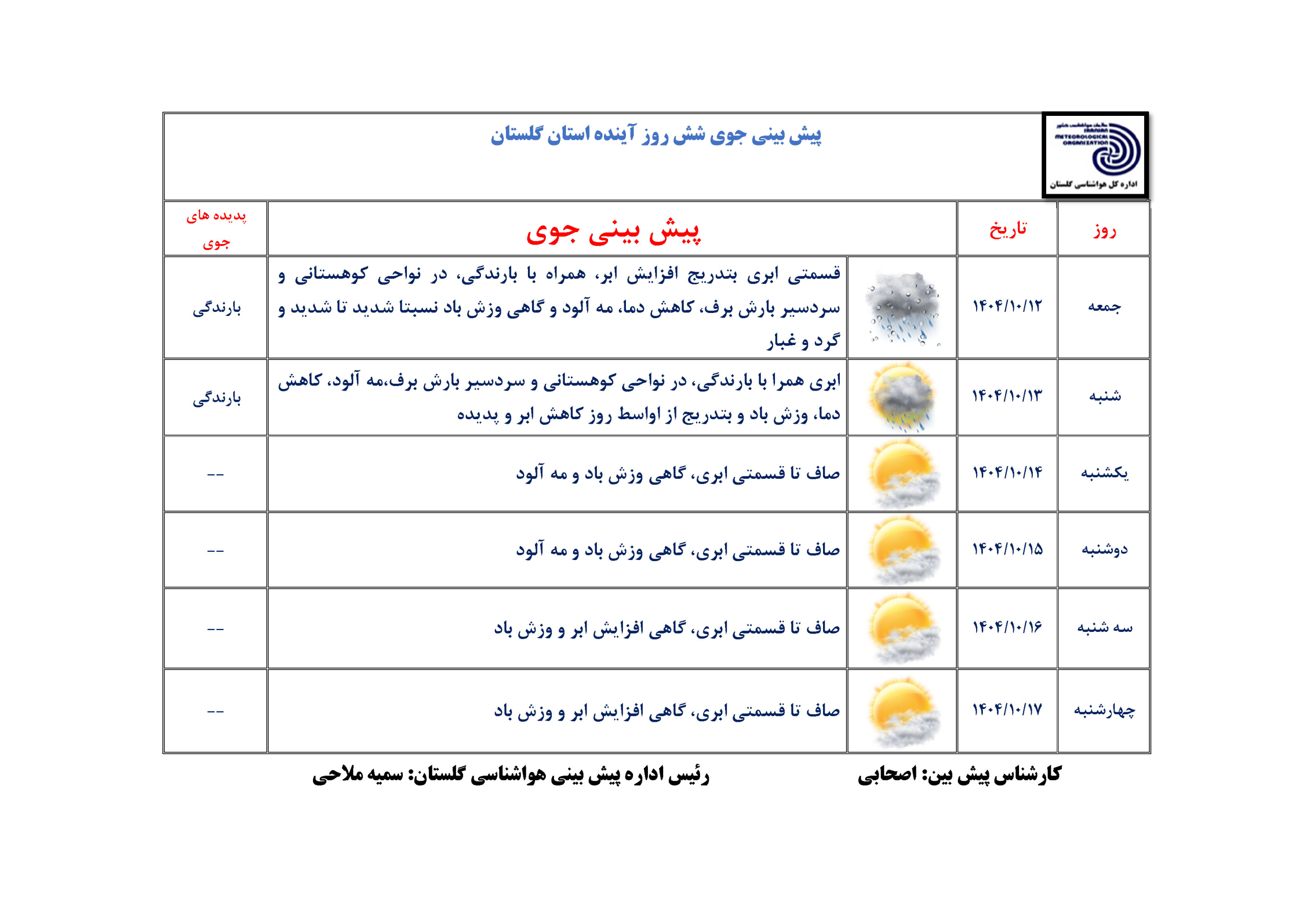 پیش بینی 6 روزه مورخ 1404/10/12