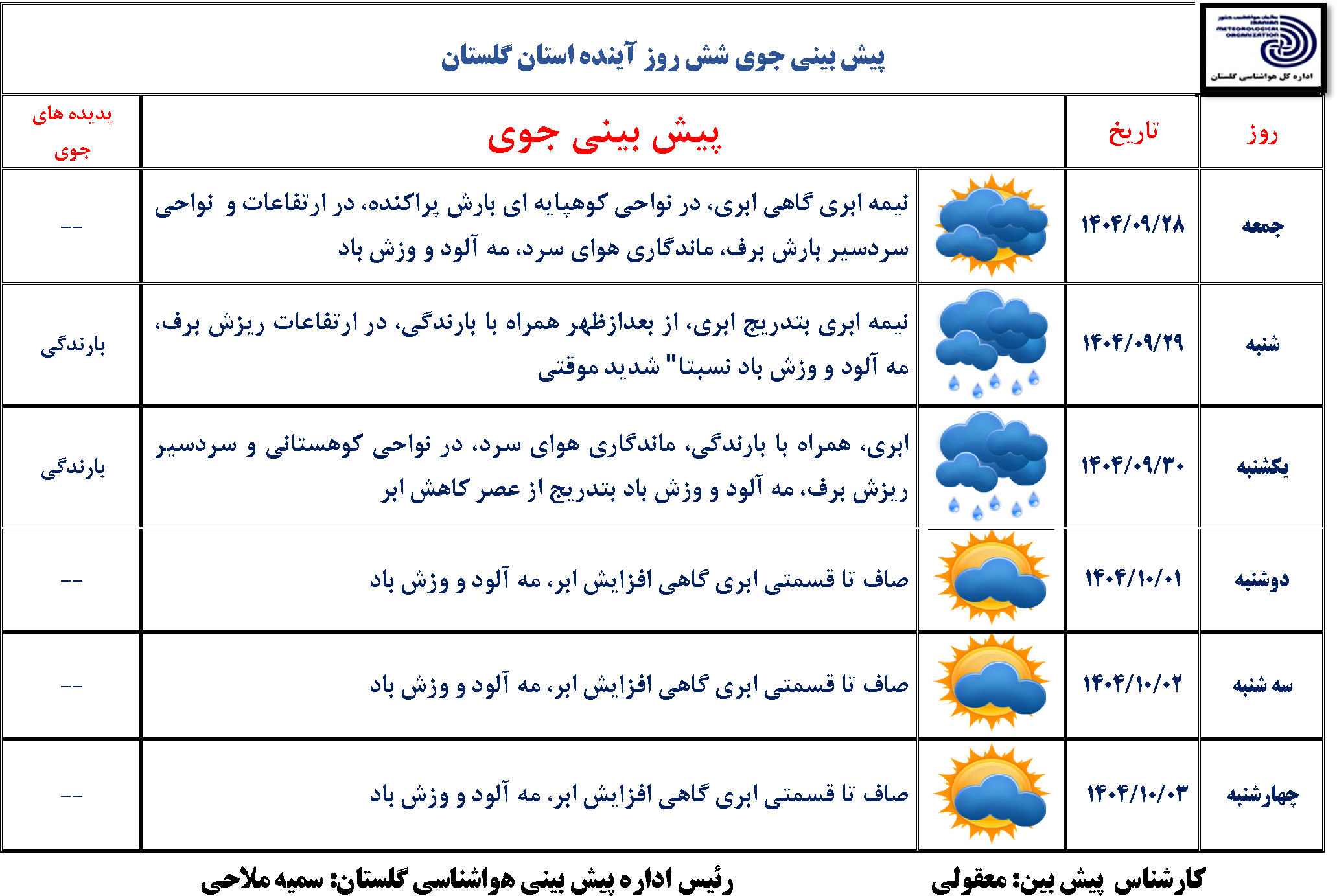 پیش بینی 6 روزه مورخ1404/09/28