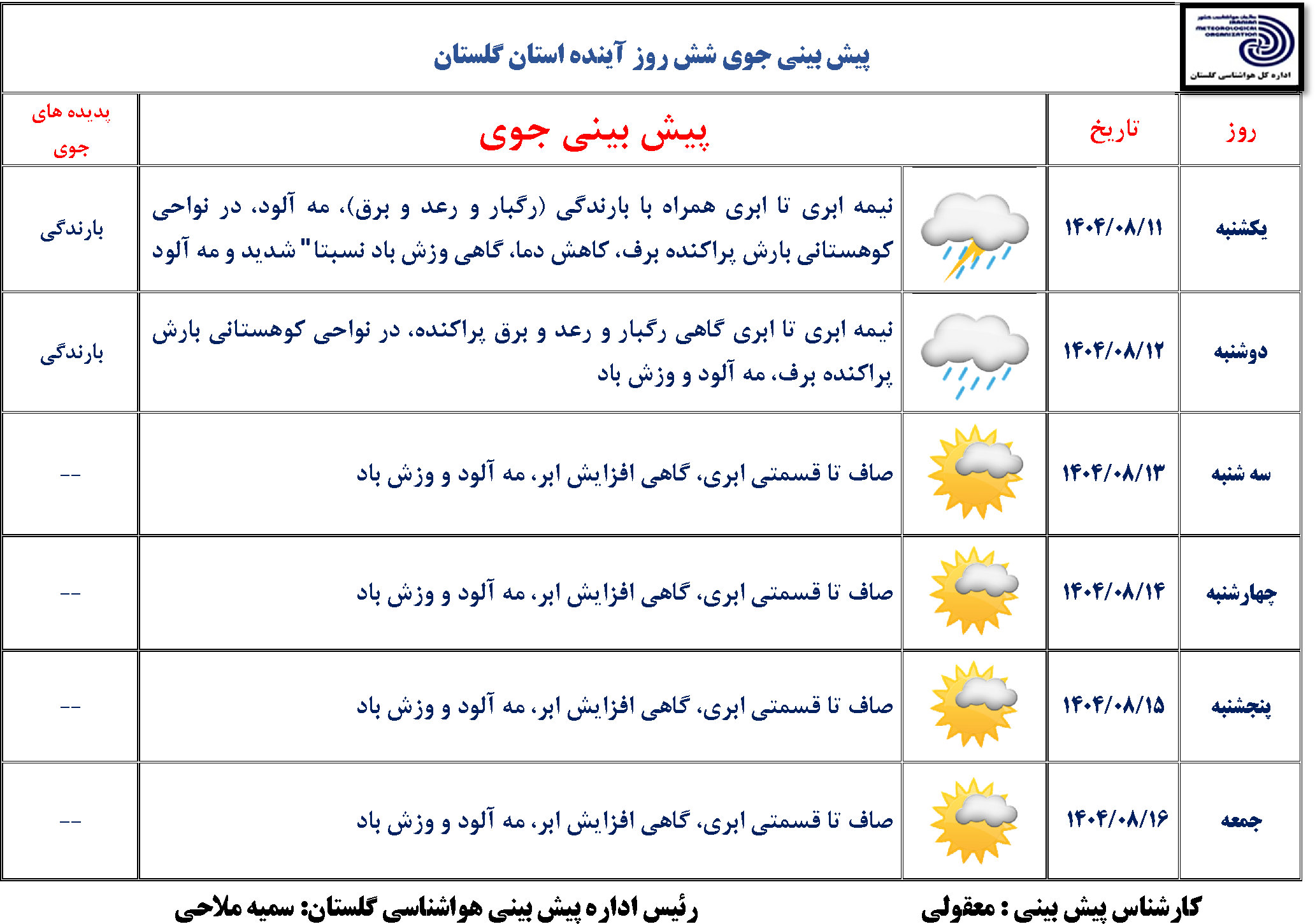 - هشدار هواشناسی جوی سطح نارنجی شماره 10 مورخ 1404/08/066 آبان 1404 - 12:23 ق.ظ