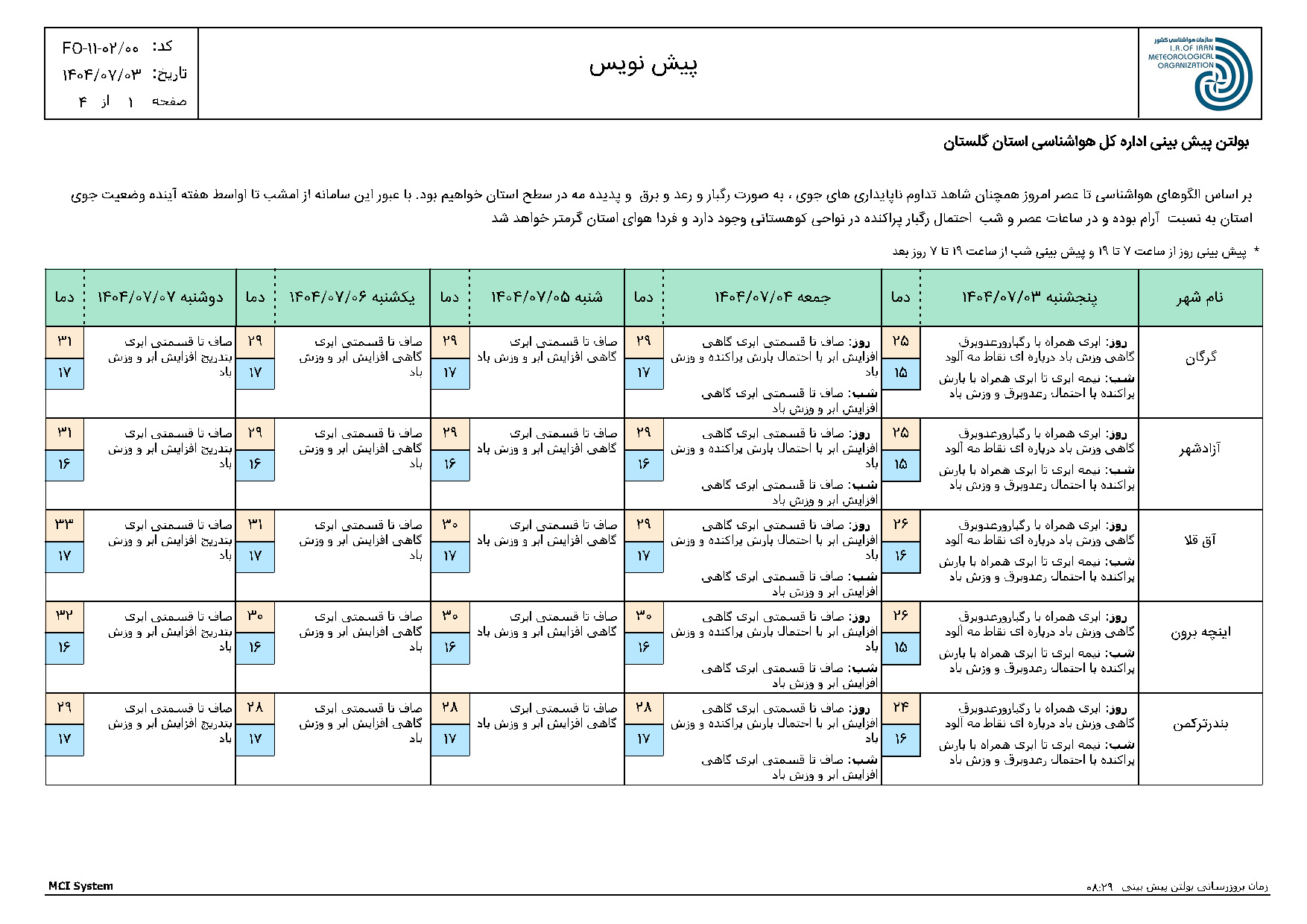 - شتاب در پروژههای هواشناسی گلستان با همکاری سازمان مدیریت و برنامهریزی11 شهریور 1404 - 1:36 ب.ظ