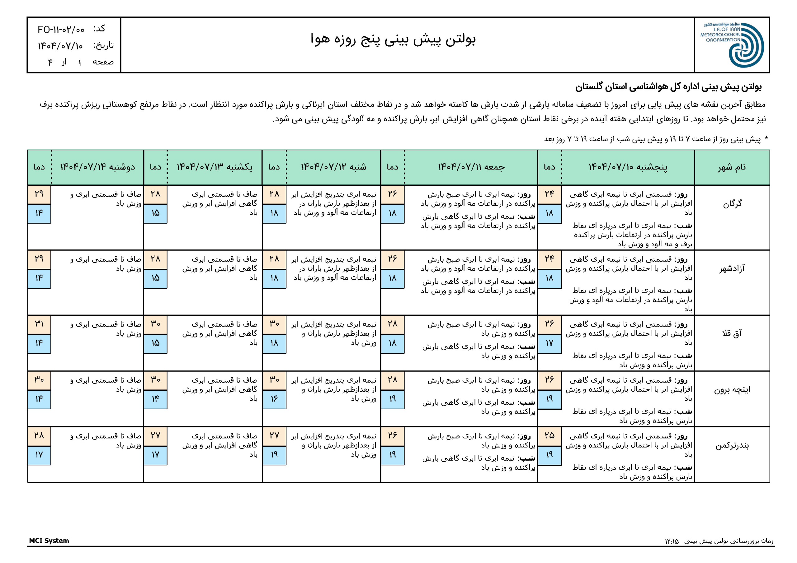 گلستان- گرگان- میدان بسیج- سایت اداری – مرکز تحقیقات هواشناسی کاربردی استان