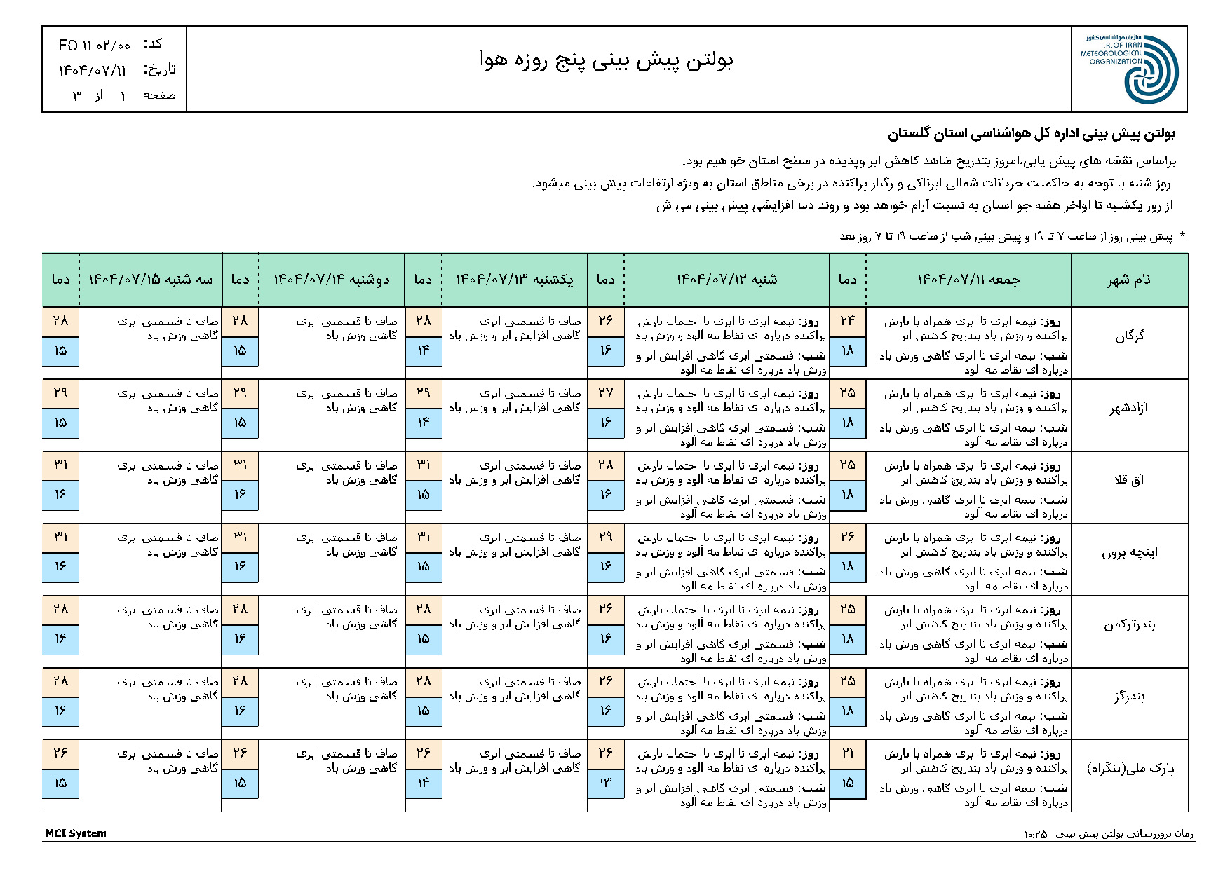 - پیام تبریک مدیرکل هواشناسی استان گلستان به مناسبت هفته دفاع مقدس2 مهر 1404 - 8:41 ق.ظ