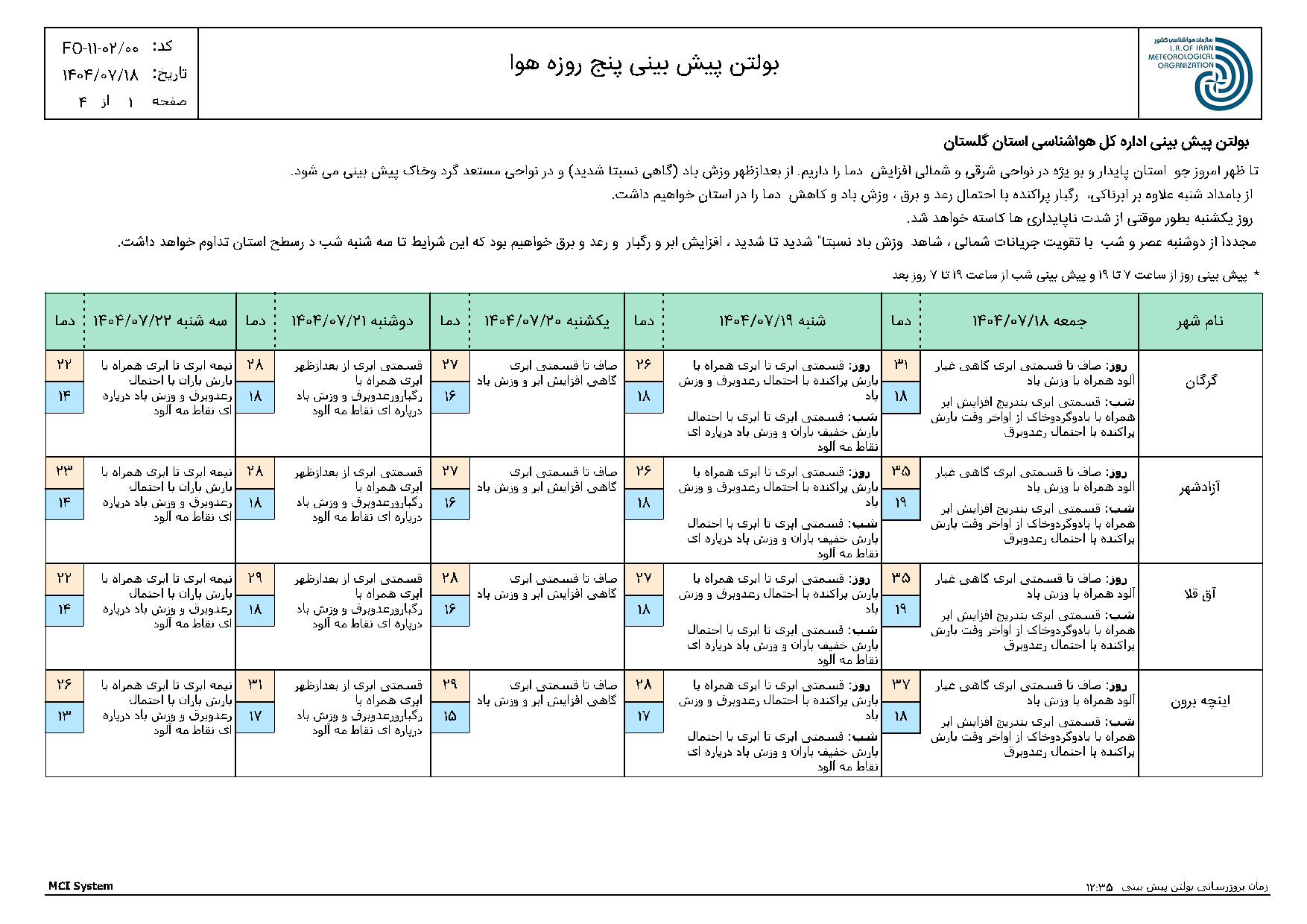 گلستان- گرگان- میدان بسیج- سایت اداری – مرکز تحقیقات هواشناسی کاربردی استان