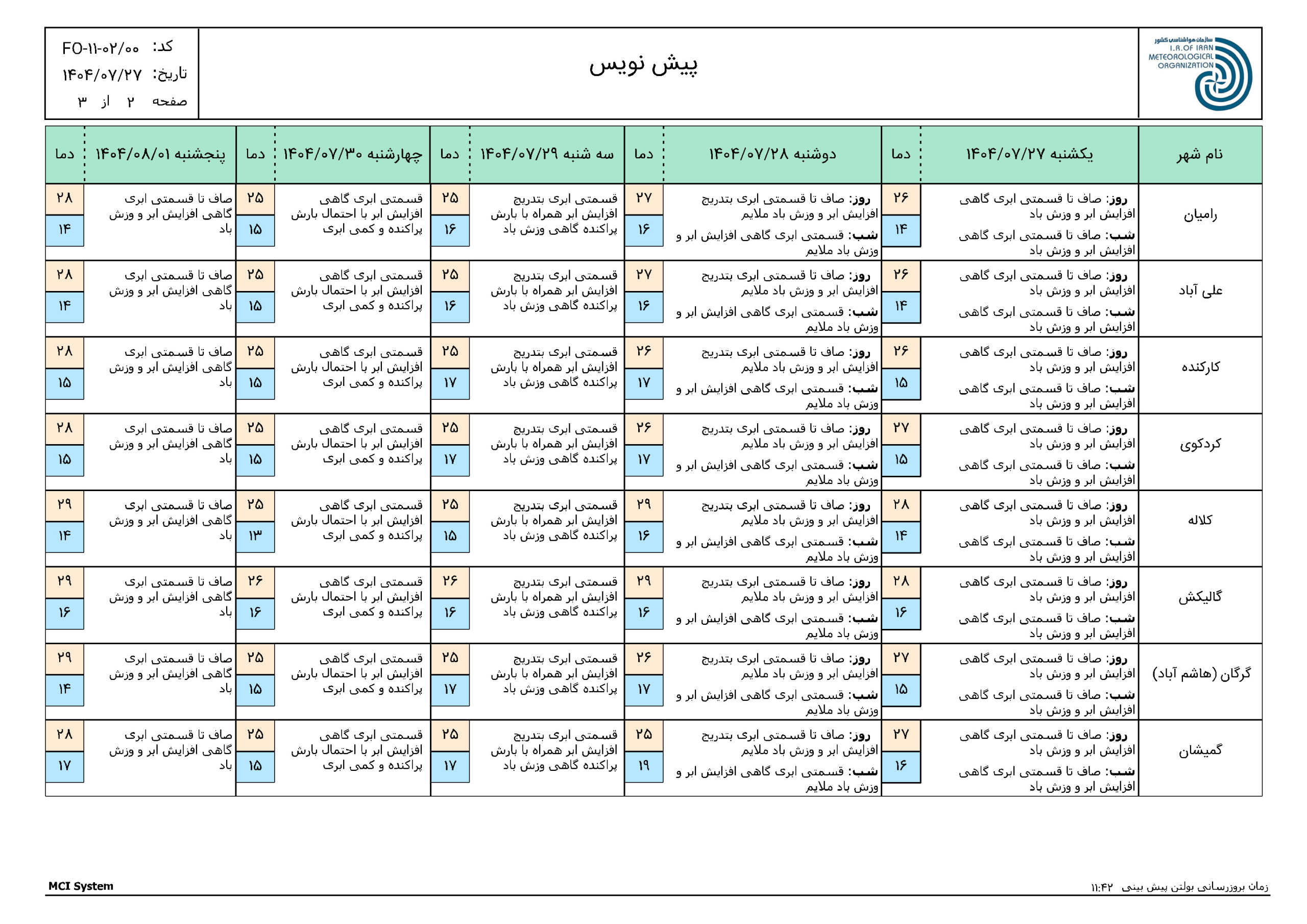 - بازديد رئيس سازمان مديريت و برنامهريزي گلستان از ادارهكل هواشناسي استان12 مهر 1404 - 2:42 ب.ظ