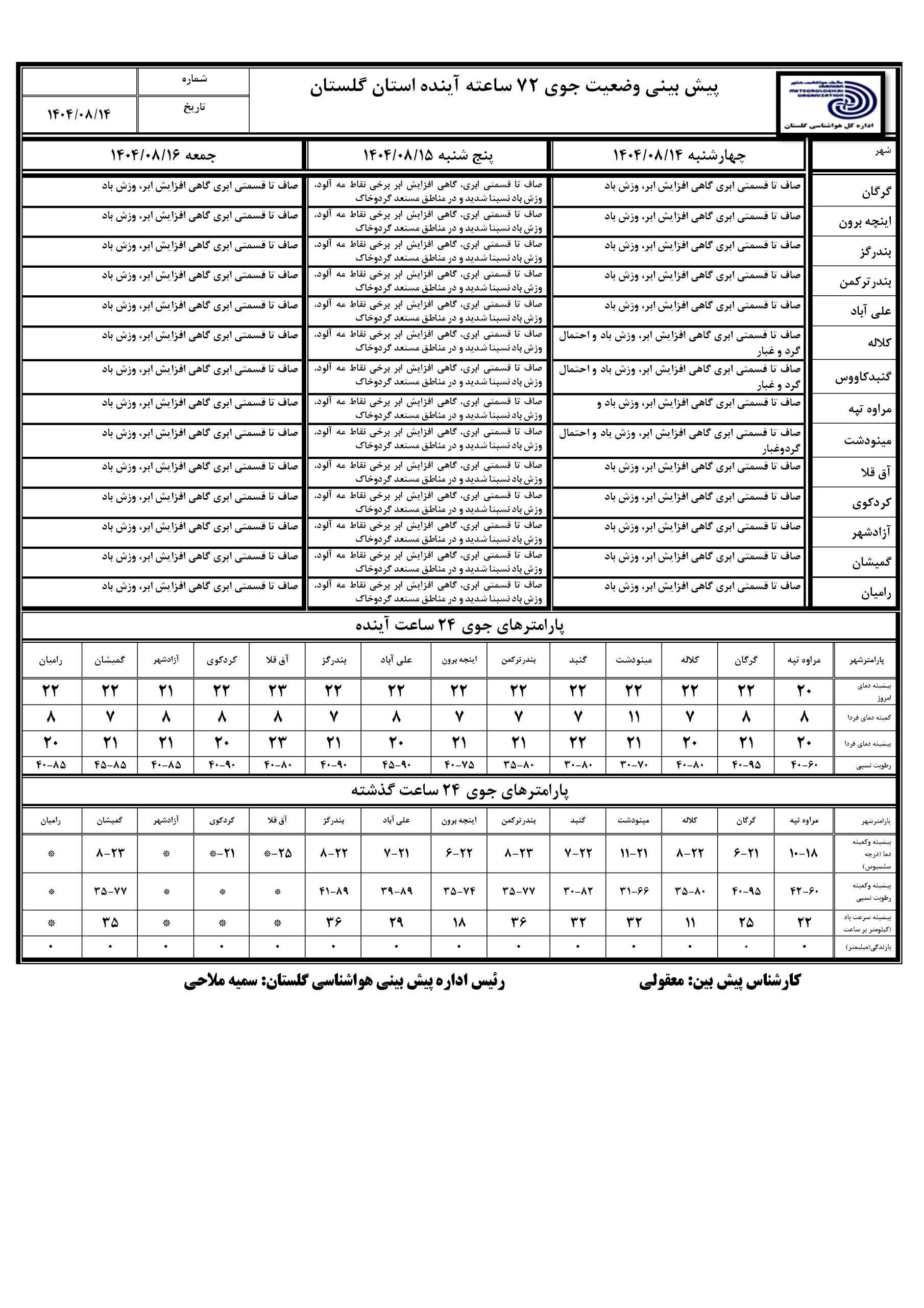 گلستان- گرگان- میدان بسیج- سایت اداری – مرکز تحقیقات هواشناسی کاربردی استان