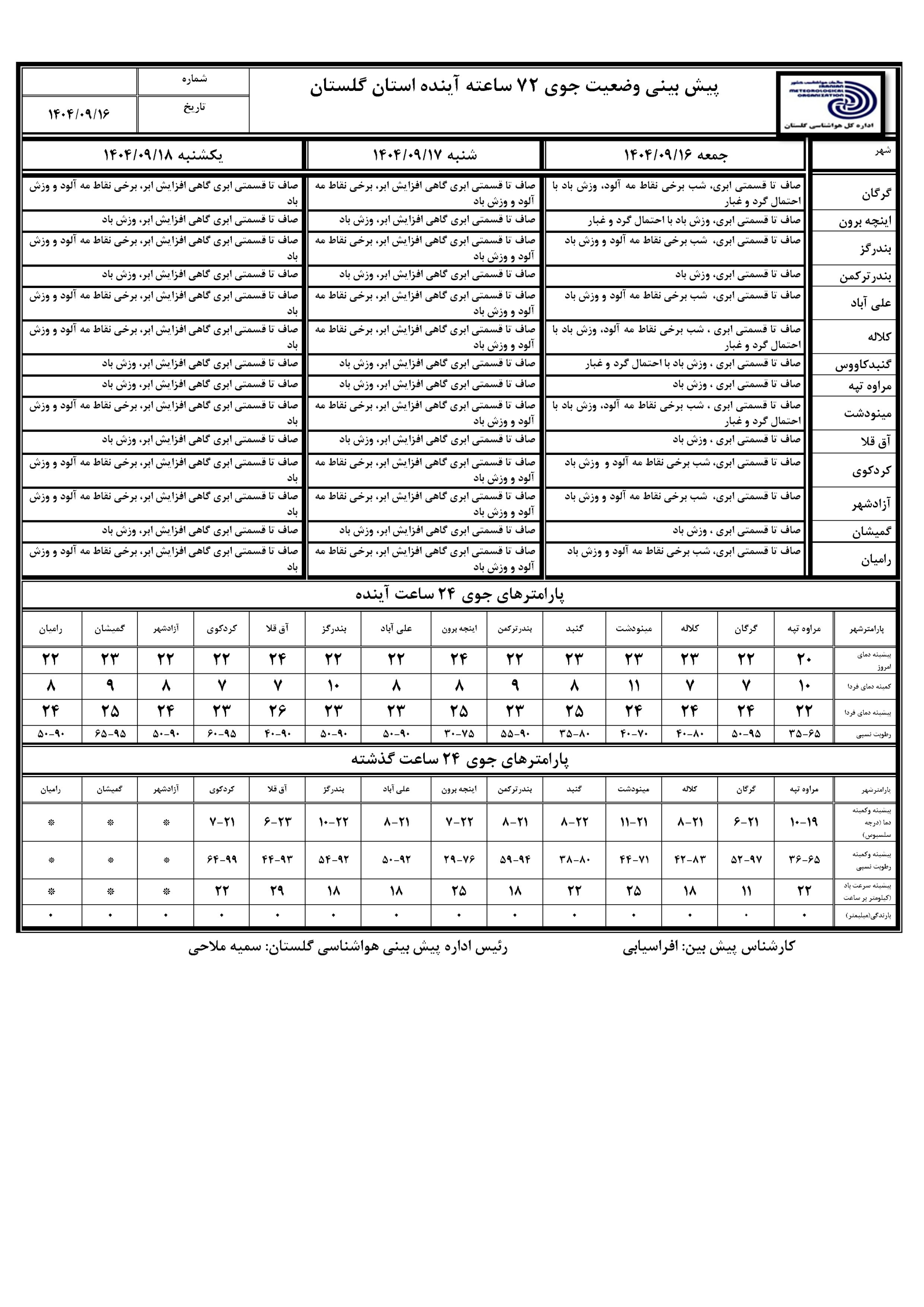 گلستان- گرگان- میدان بسیج- سایت اداری – مرکز تحقیقات هواشناسی کاربردی استان