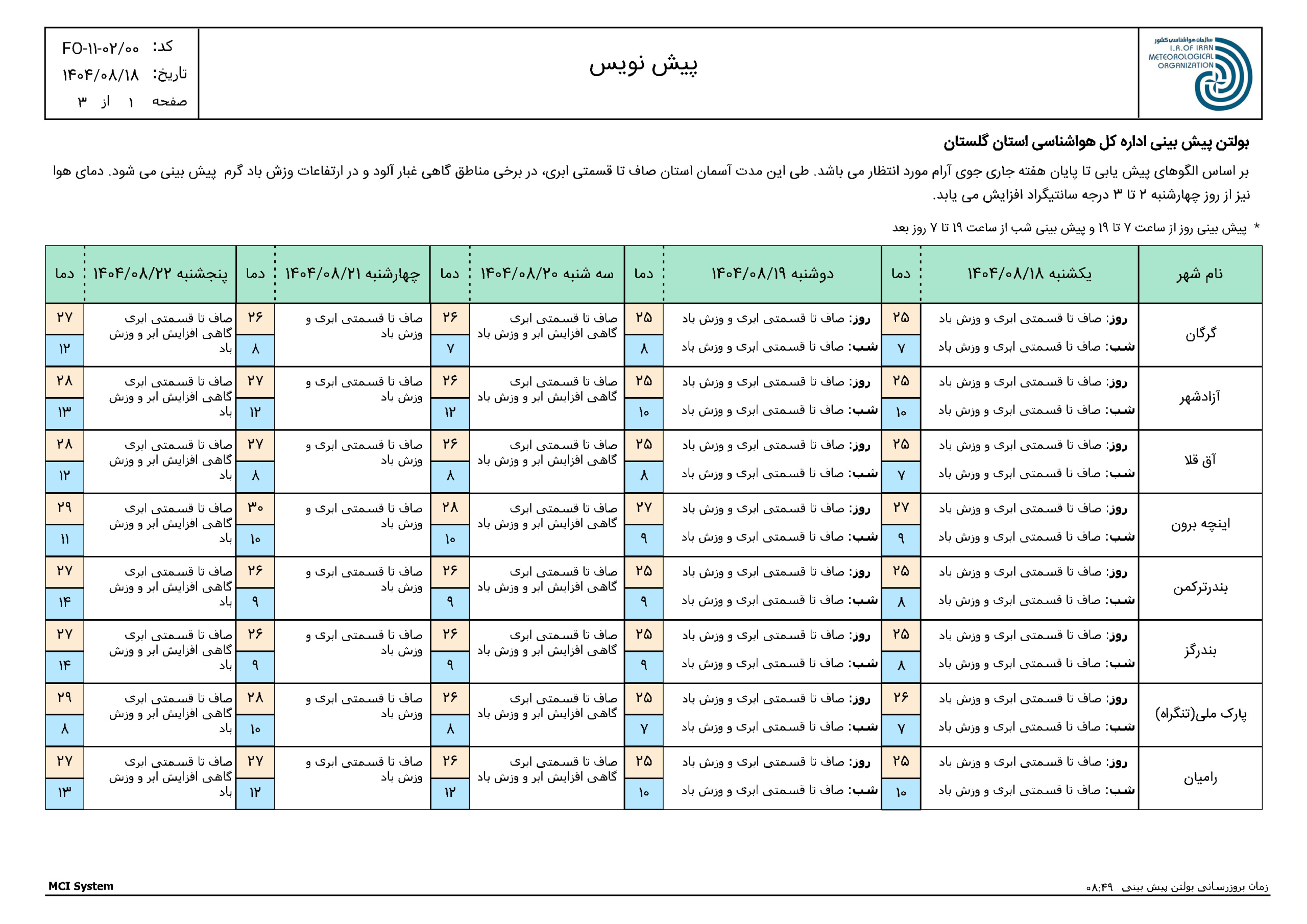 گلستان- گرگان- میدان بسیج- سایت اداری – مرکز تحقیقات هواشناسی کاربردی استان