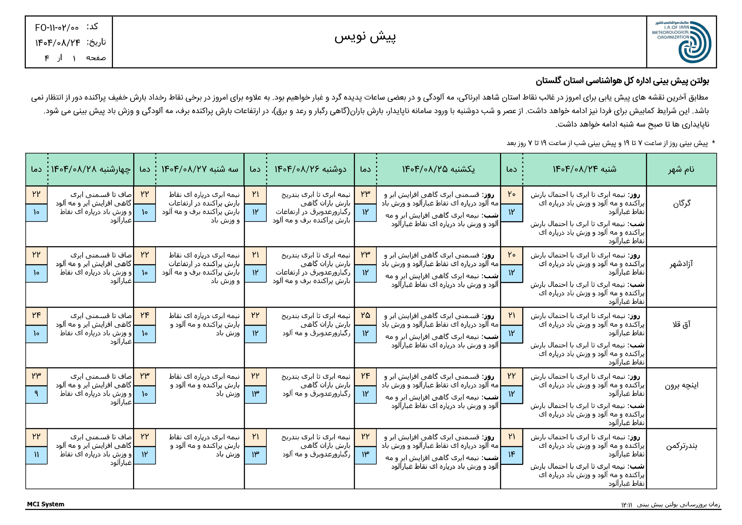 گلستان- گرگان- میدان بسیج- سایت اداری – مرکز تحقیقات هواشناسی کاربردی استان