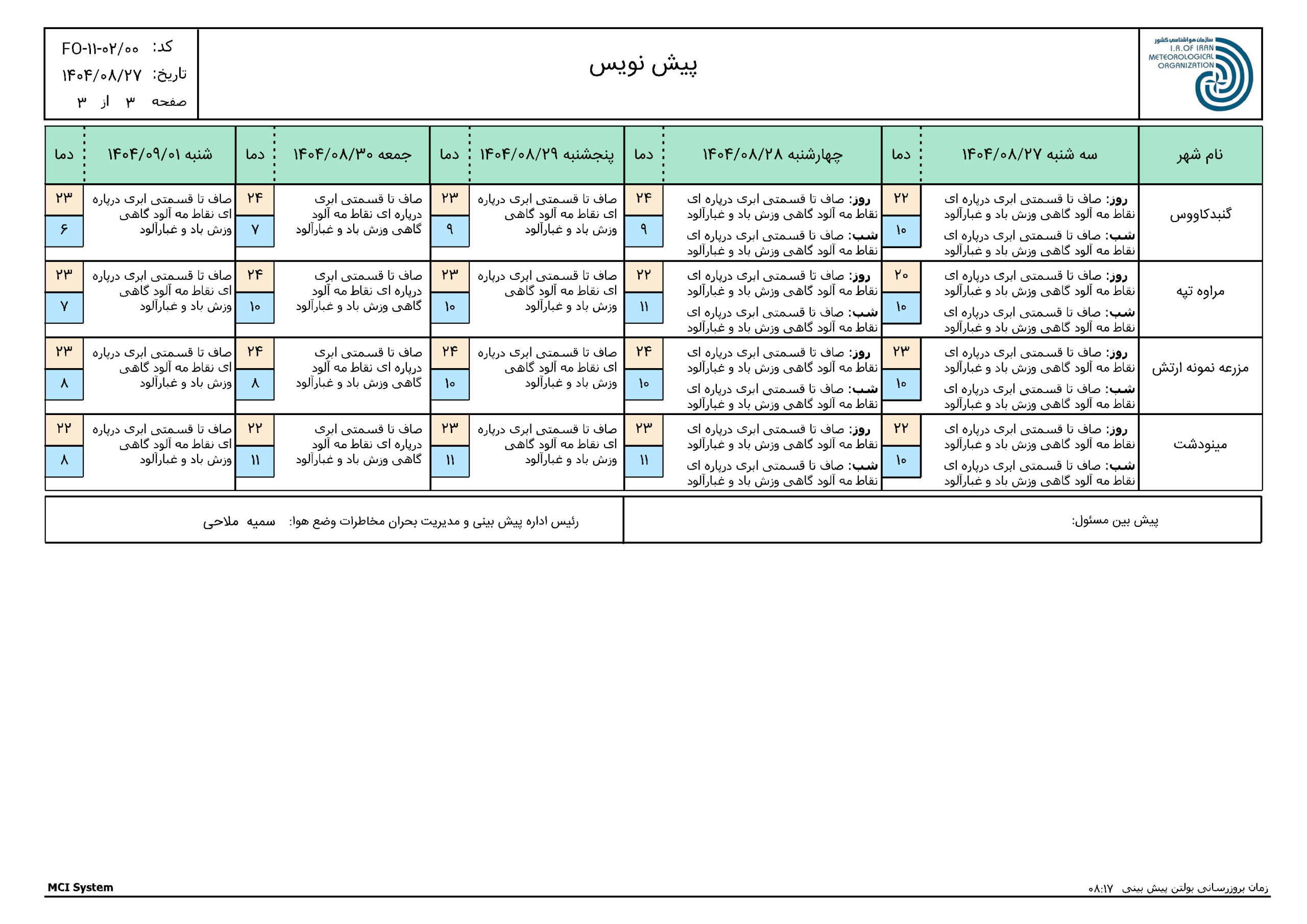 گلستان- گرگان- میدان بسیج- سایت اداری – مرکز تحقیقات هواشناسی کاربردی استان