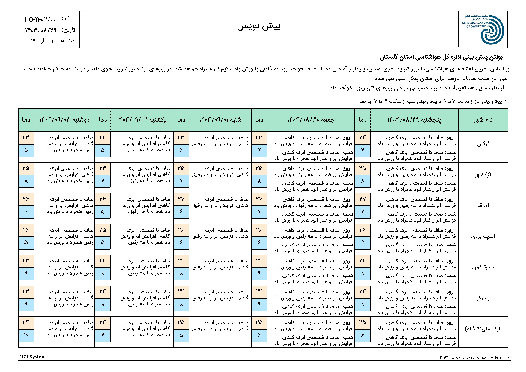 گلستان- گرگان- میدان بسیج- سایت اداری – مرکز تحقیقات هواشناسی کاربردی استان