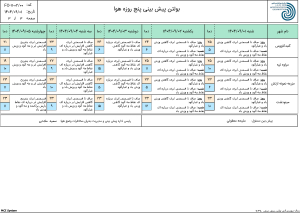 کاهش ۱۸ درصدی بارشهای پاییزی در استان گلستان نسبت به دوره بلندمدت18 آبان 1404 - 1:09 ب.ظ- هشدار هواشناسی جوی سطح نارنجی شماره 10 مورخ 1404/08/066 آبان 1404 - 12:23 ق.ظ