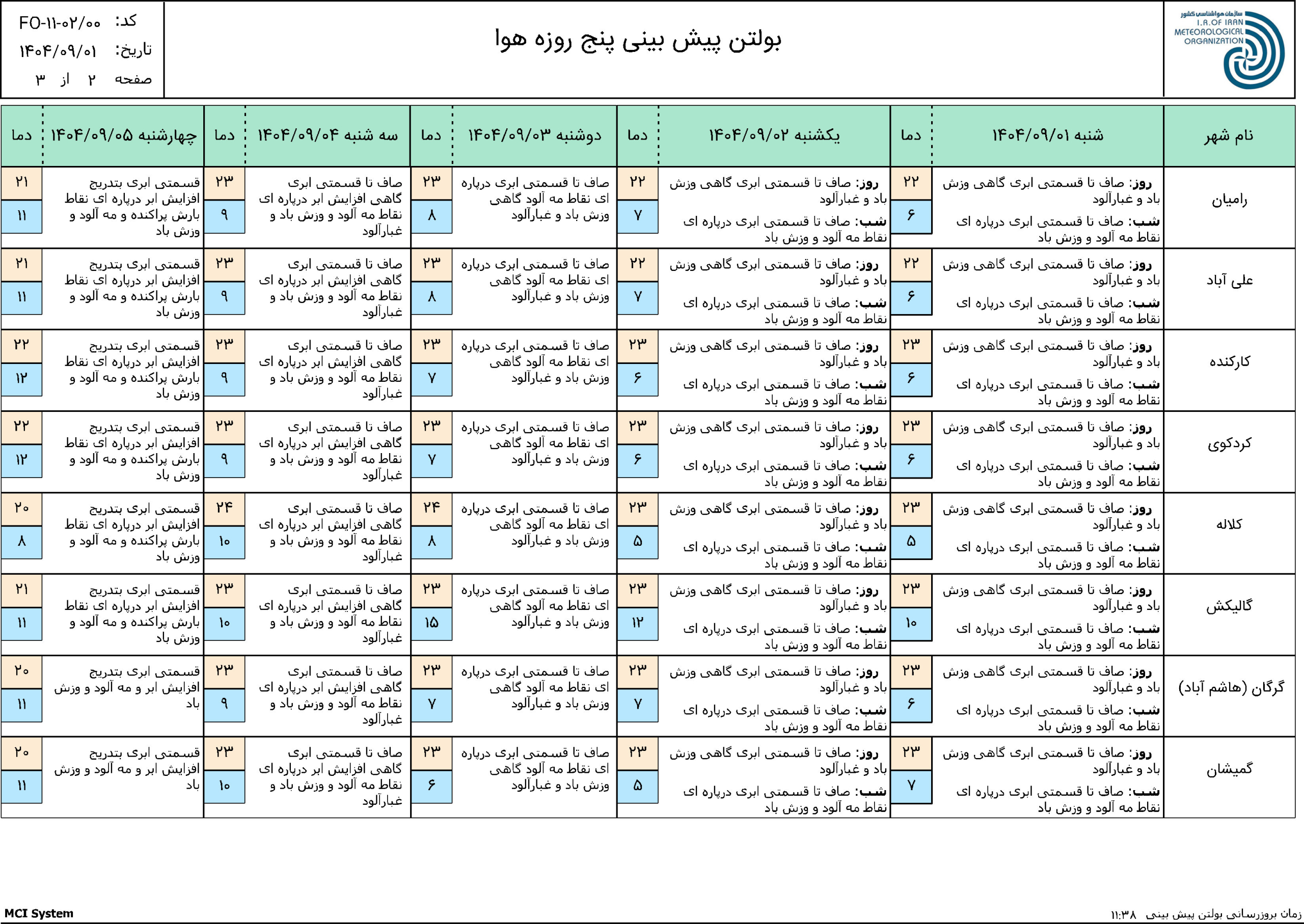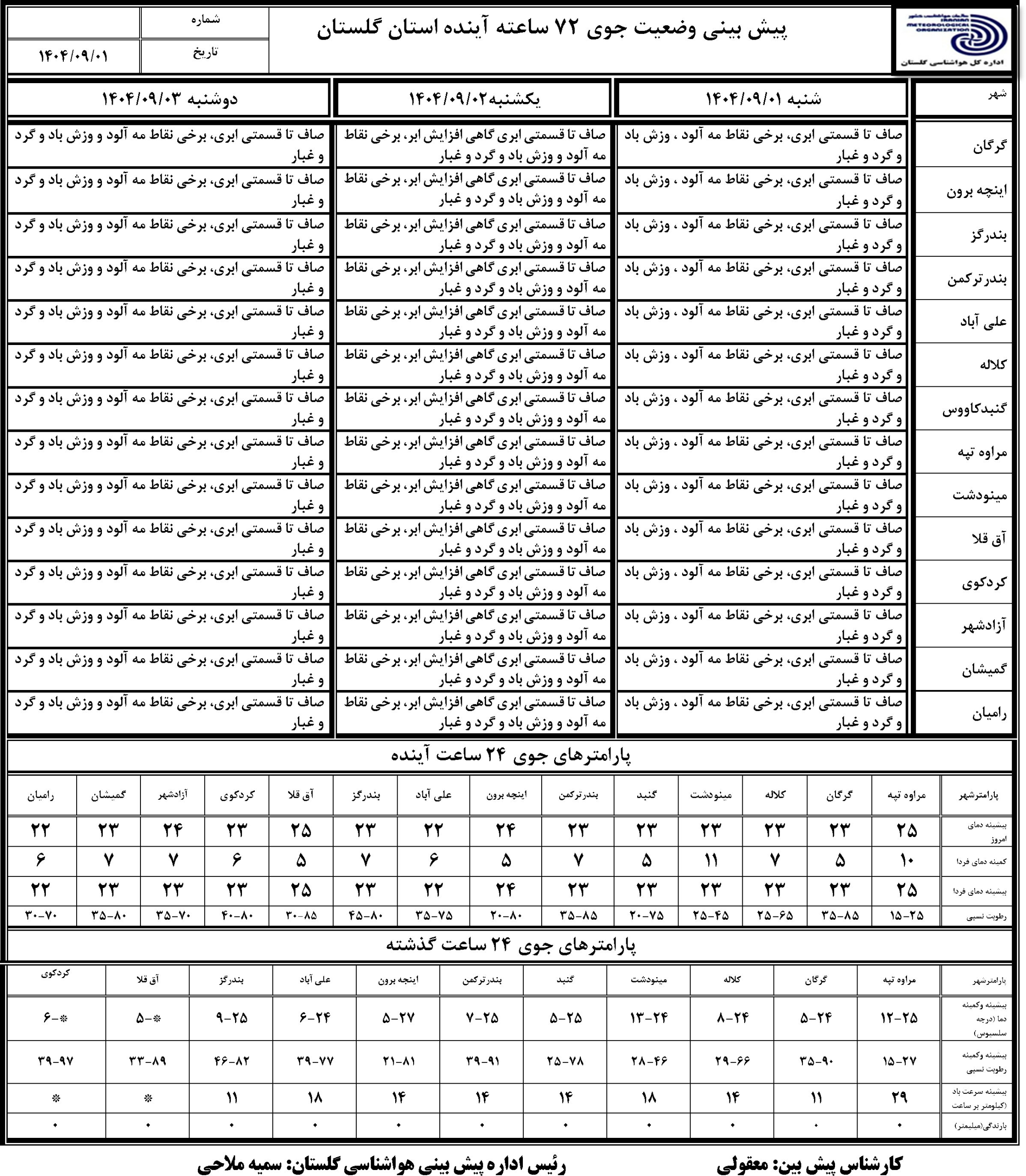 گلستان- گرگان- میدان بسیج- سایت اداری – مرکز تحقیقات هواشناسی کاربردی استان
