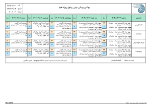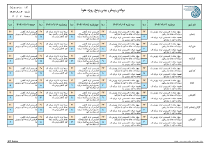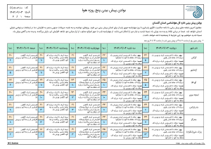 کاهش ۱۸ درصدی بارشهای پاییزی در استان گلستان نسبت به دوره بلندمدت18 آبان 1404 - 1:09 ب.ظ- هشدار هواشناسی جوی سطح نارنجی شماره 10 مورخ 1404/08/066 آبان 1404 - 12:23 ق.ظ