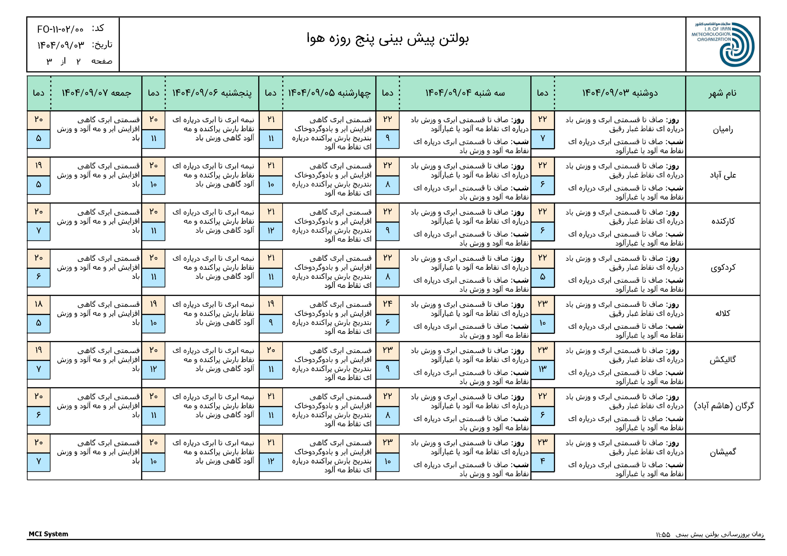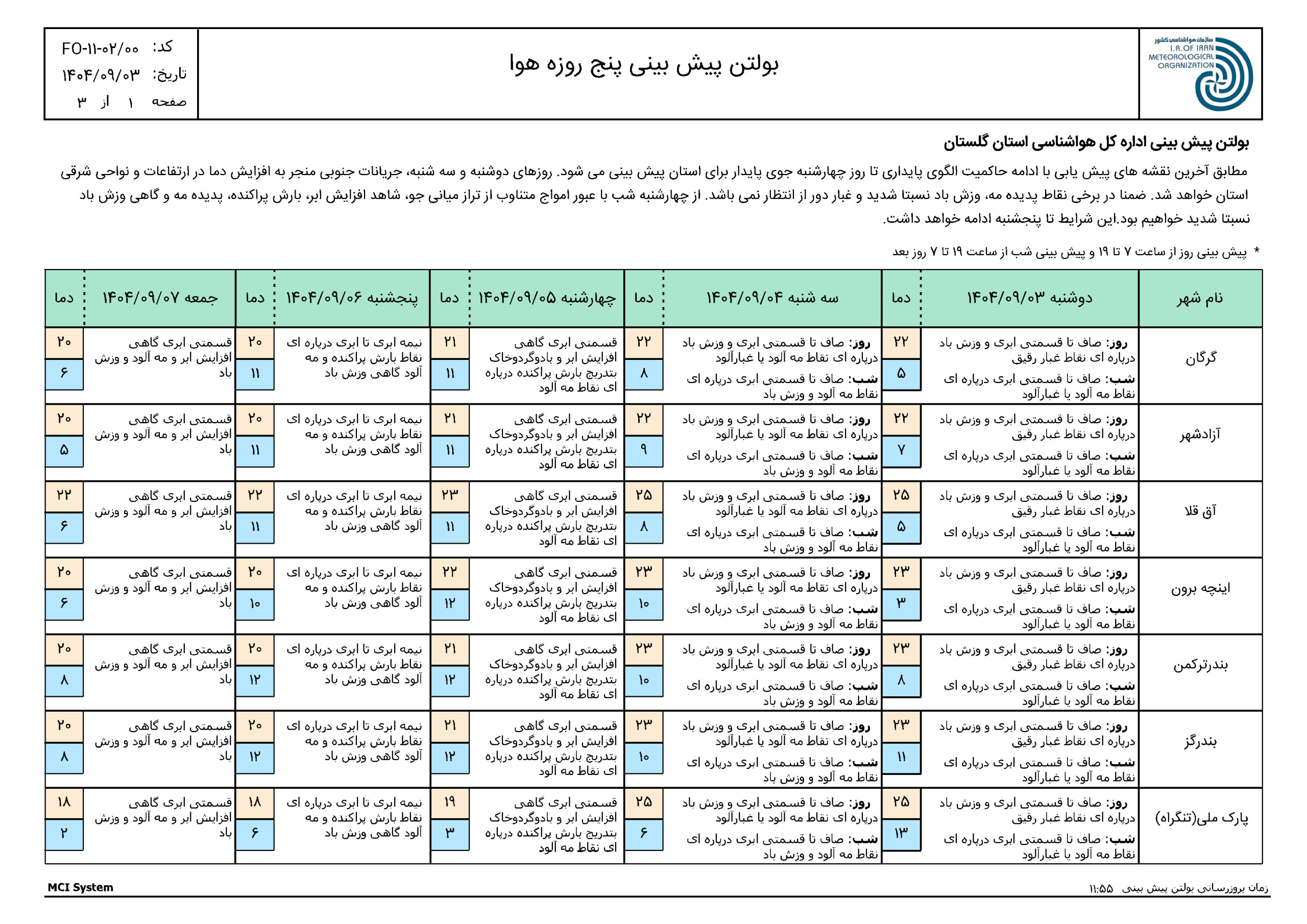 گلستان- گرگان- میدان بسیج- سایت اداری – مرکز تحقیقات هواشناسی کاربردی استان