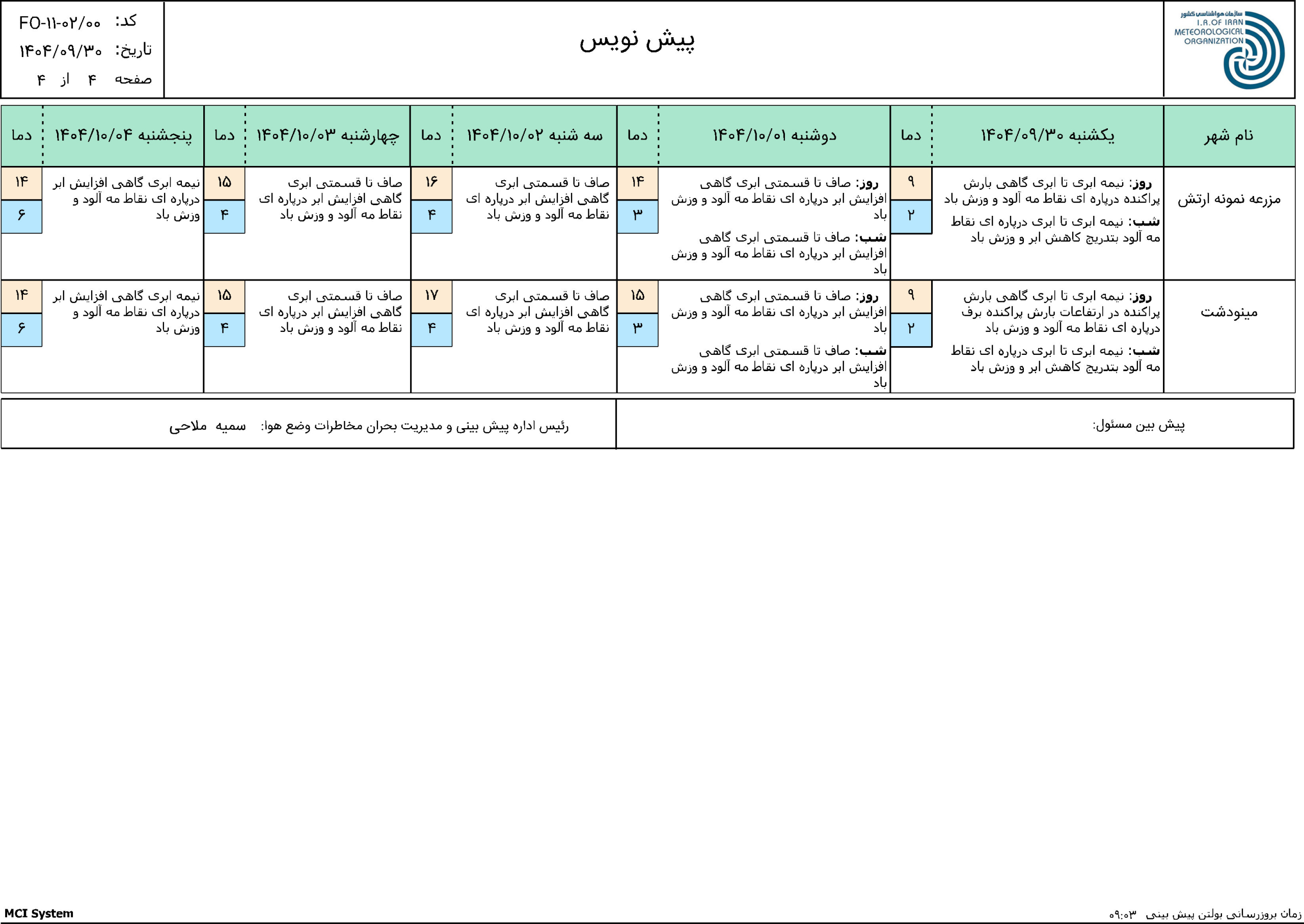 - سازمان هواشناسی کشور