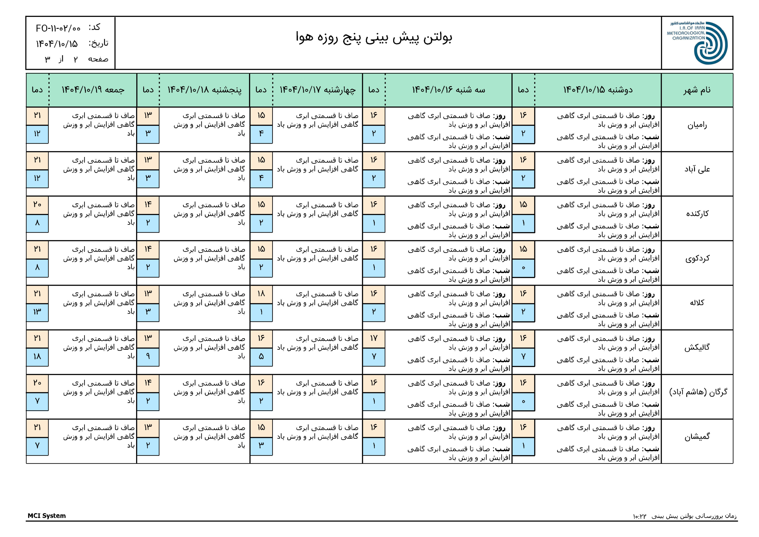 گلستان- گرگان- میدان بسیج- سایت اداری – مرکز تحقیقات هواشناسی کاربردی استان