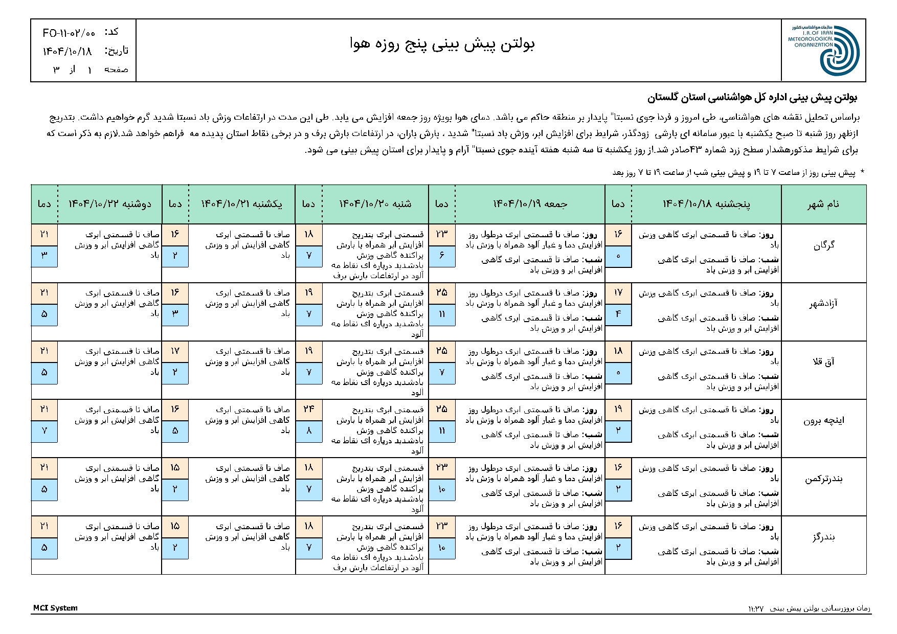 گلستان- گرگان- میدان بسیج- سایت اداری – مرکز تحقیقات هواشناسی کاربردی استان