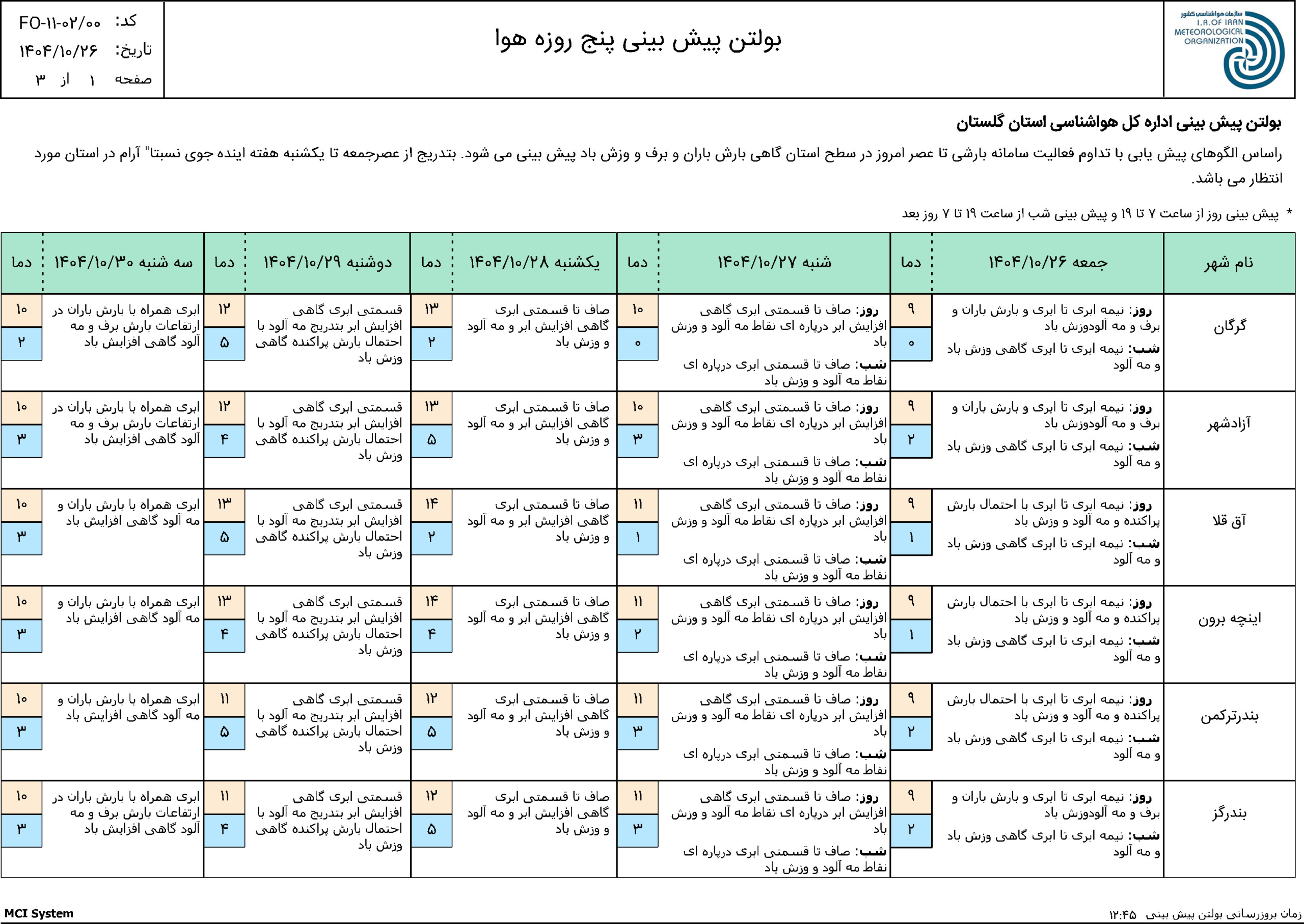 گلستان- گرگان- میدان بسیج- سایت اداری – مرکز تحقیقات هواشناسی کاربردی استان