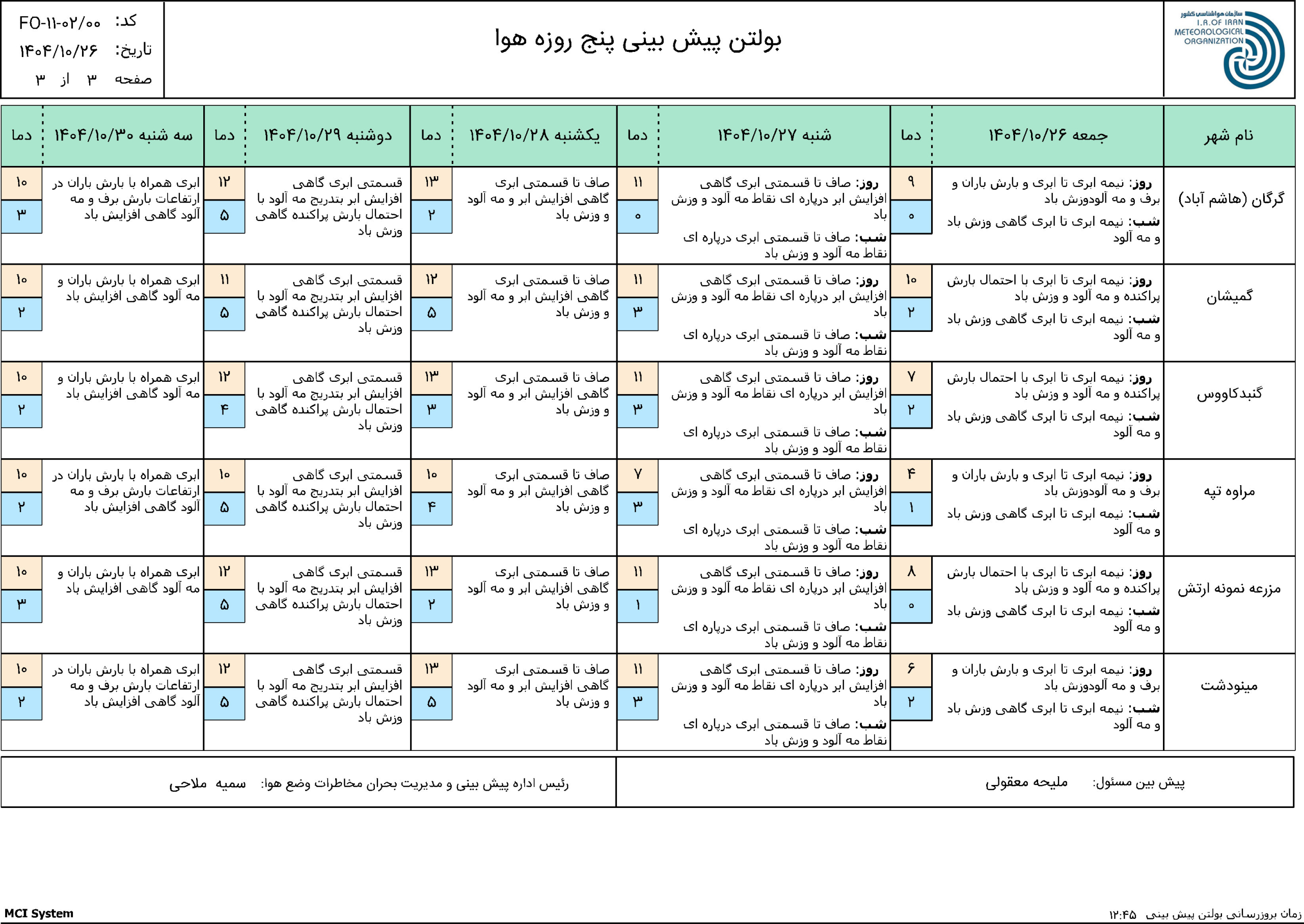 نشست کارگروه منطقهای هواشناسی کشور به میزبانی استان گلستان برگزار شد17 آذر 1404 - 10:54 ق.ظ