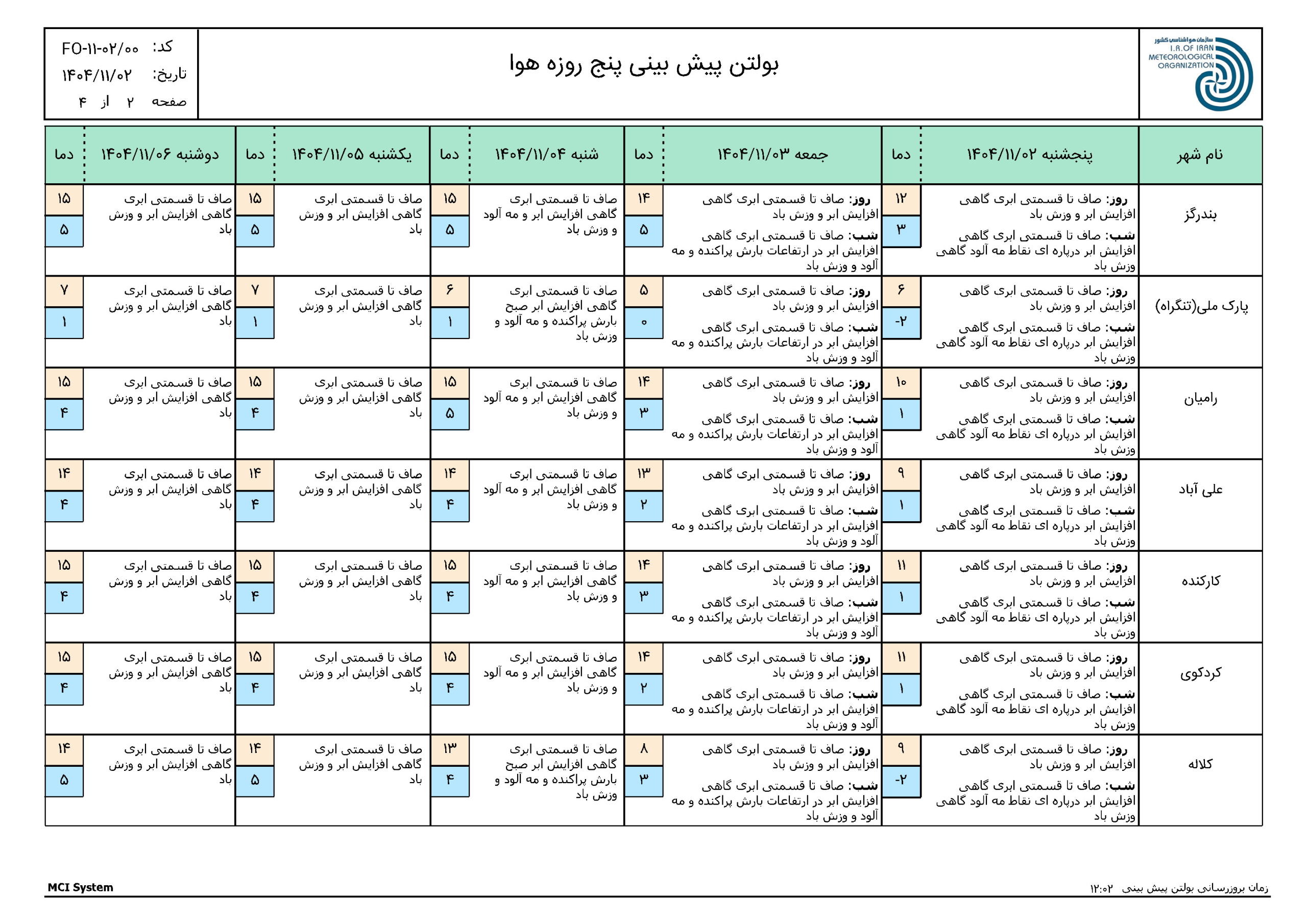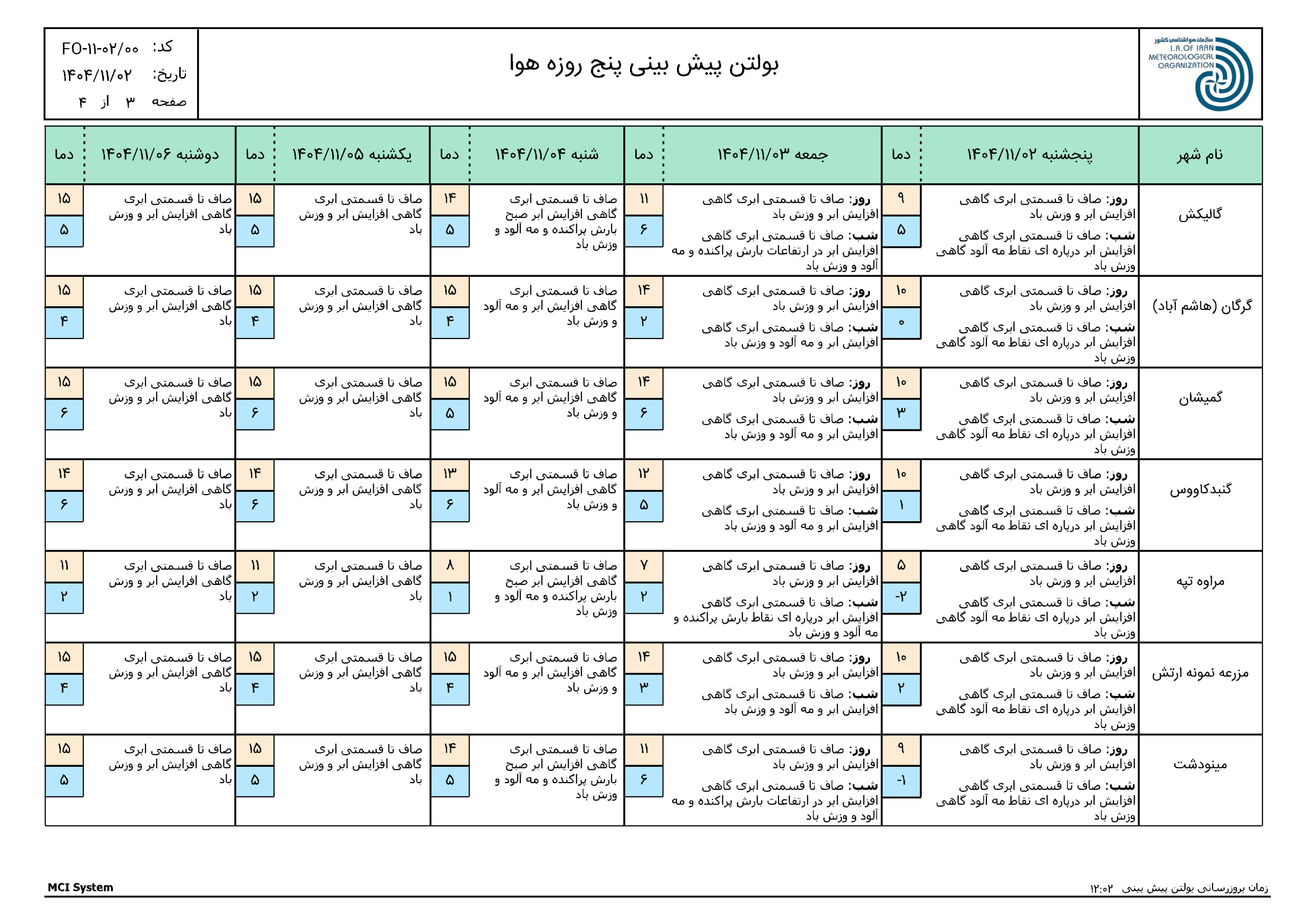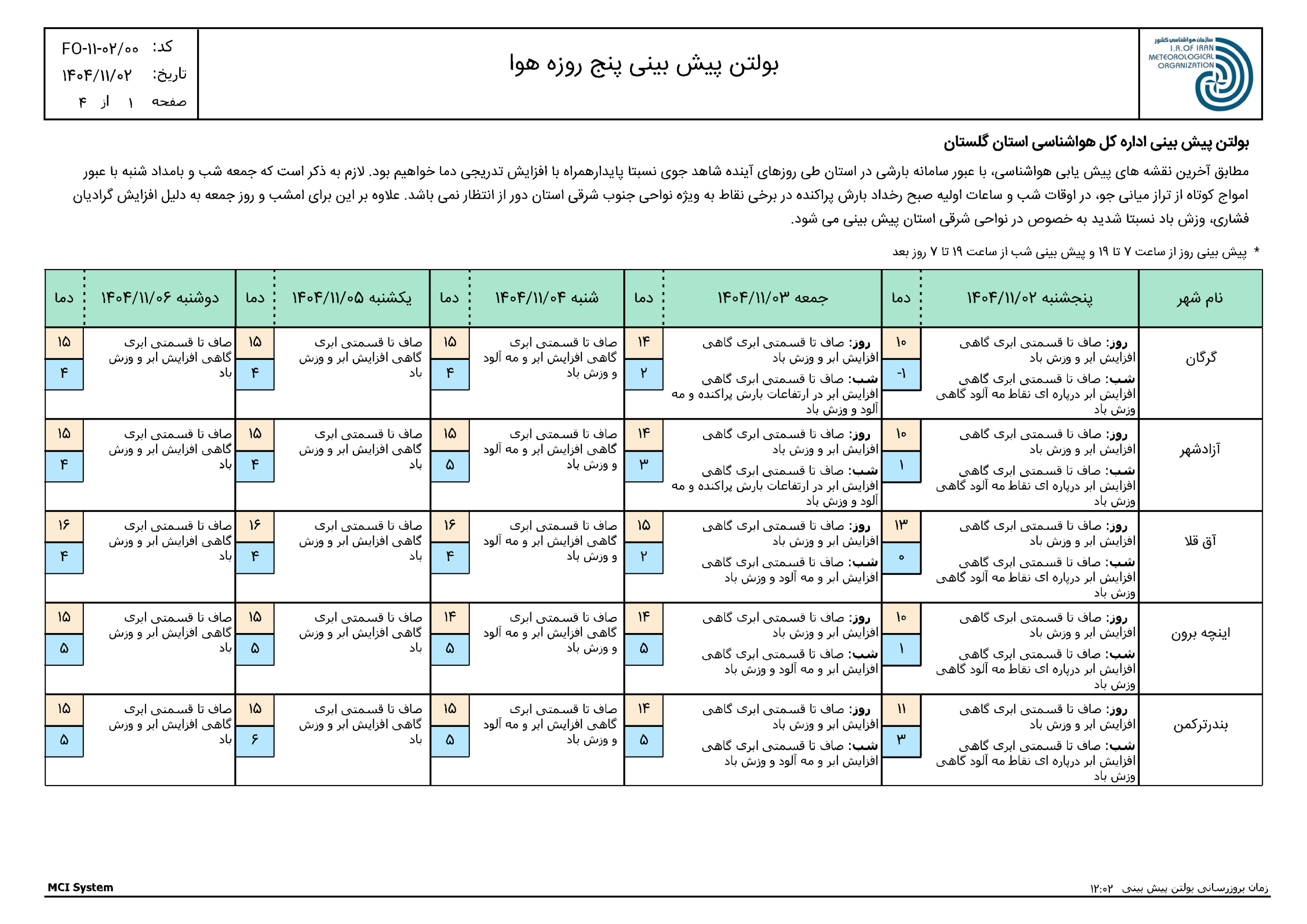 نشست کارگروه منطقهای هواشناسی کشور به میزبانی استان گلستان برگزار شد17 آذر 1404 - 10:54 ق.ظ