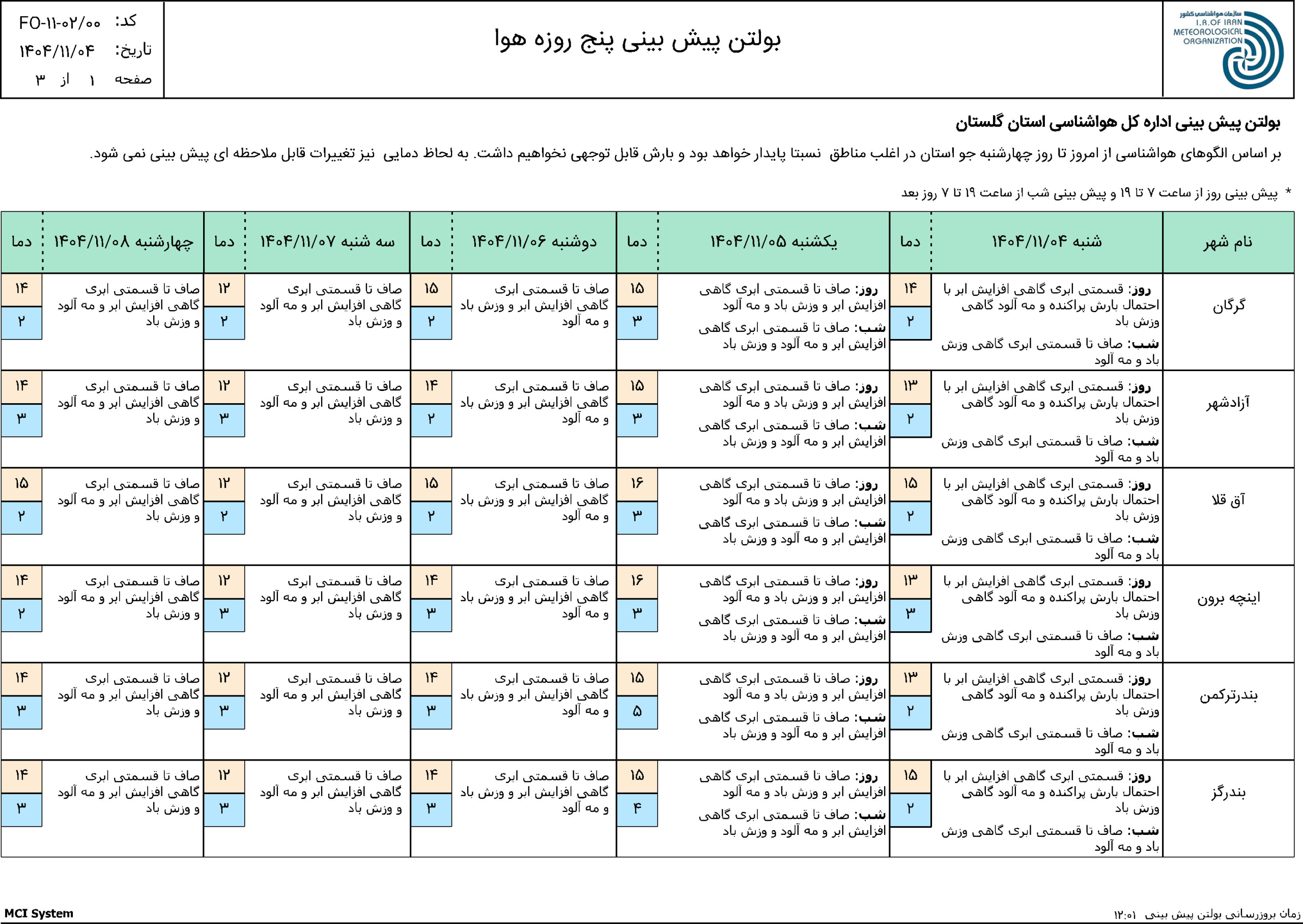گلستان- گرگان- میدان بسیج- سایت اداری – مرکز تحقیقات هواشناسی کاربردی استان