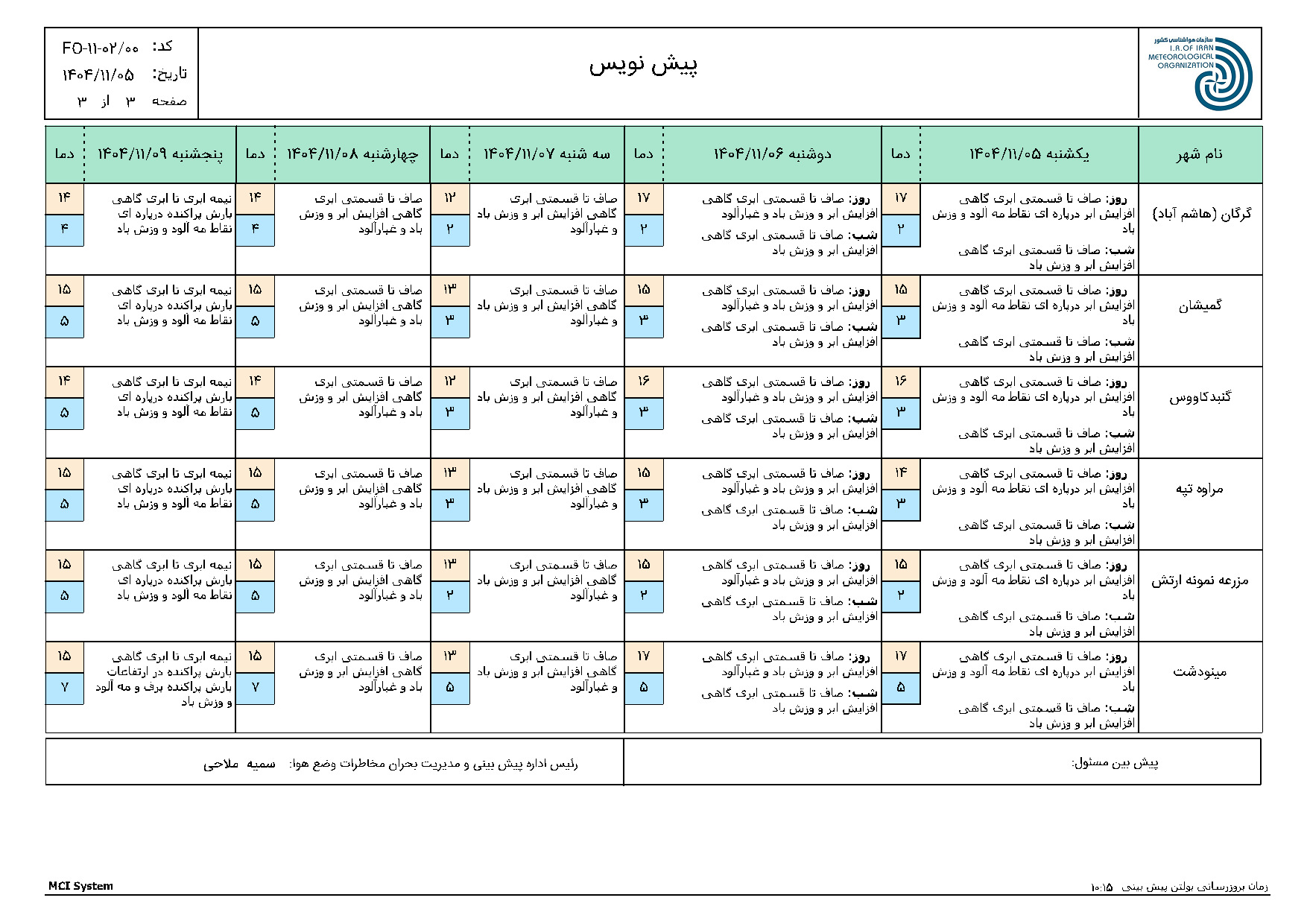- سازمان هواشناسی کشور