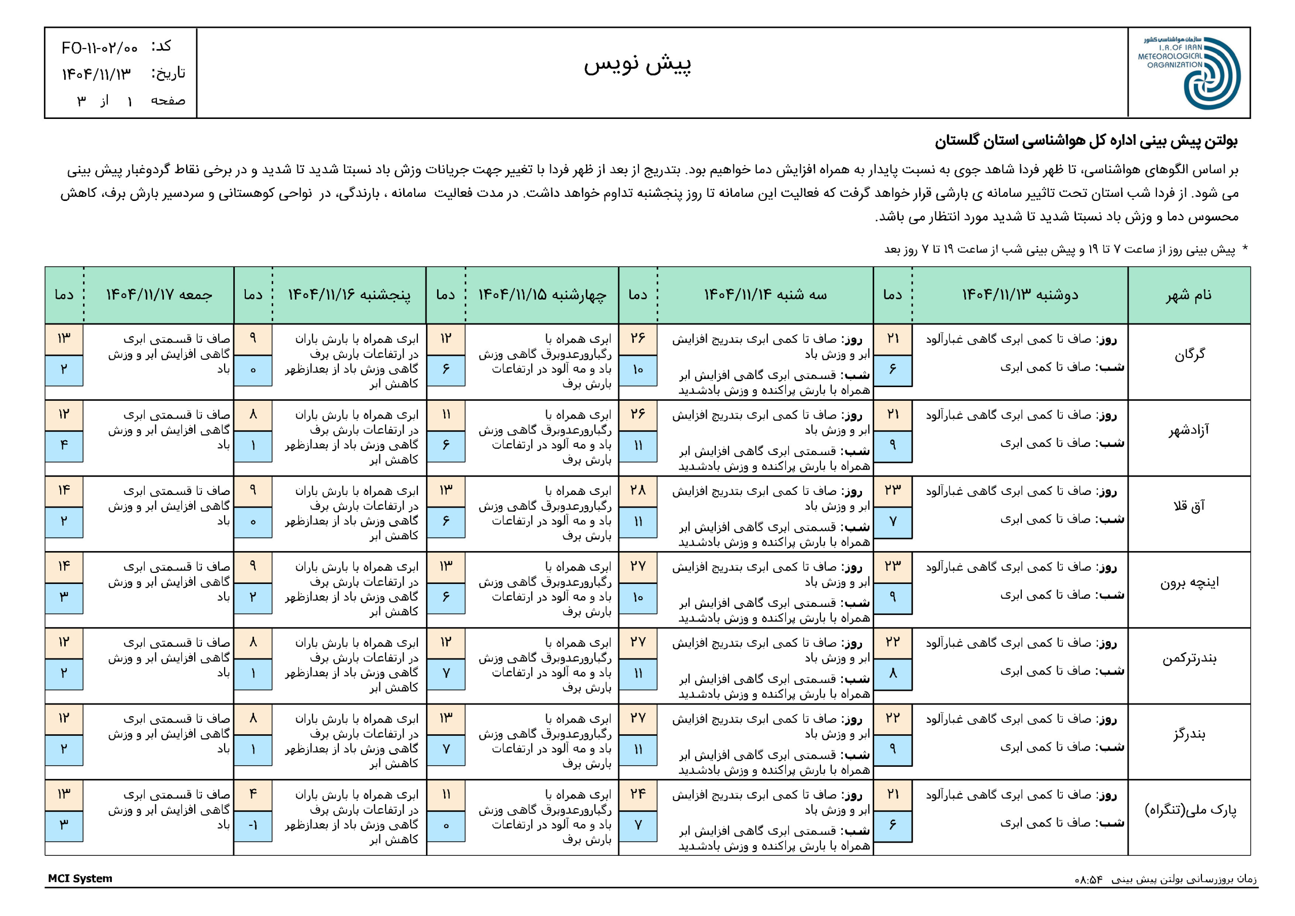 نشست کارگروه منطقهای هواشناسی کشور به میزبانی استان گلستان برگزار شد17 آذر 1404 - 10:54 ق.ظ