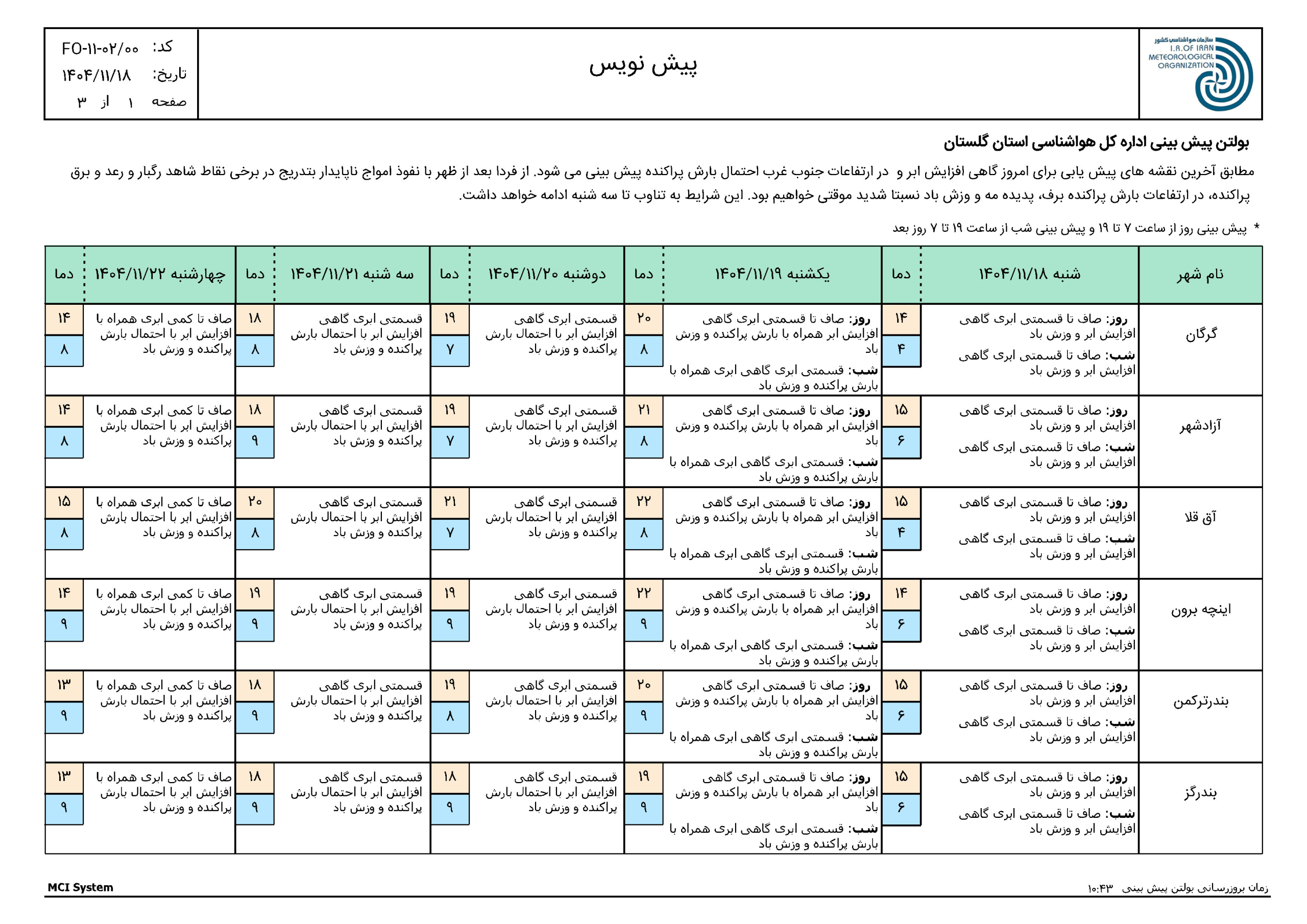 نشست کارگروه منطقهای هواشناسی کشور به میزبانی استان گلستان برگزار شد17 آذر 1404 - 10:54 ق.ظ
