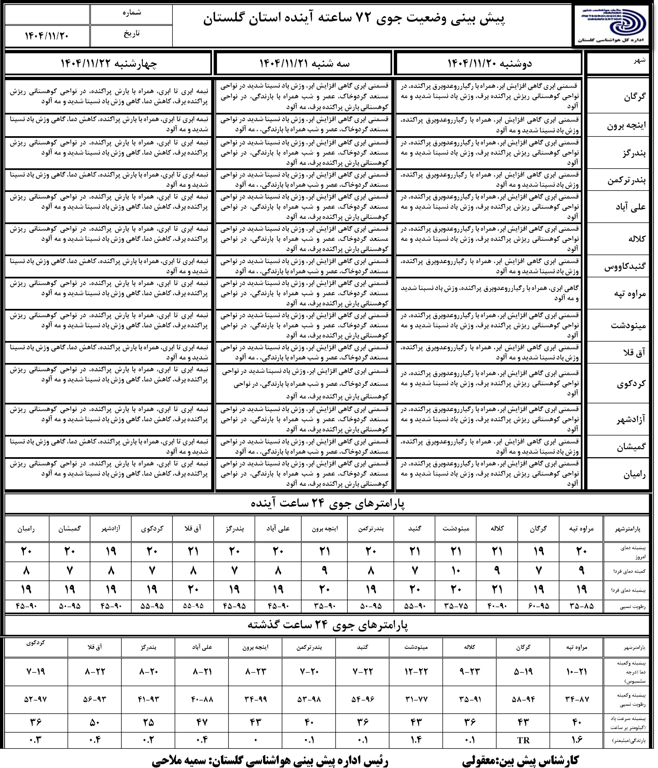 نشست کارگروه منطقهای هواشناسی کشور به میزبانی استان گلستان برگزار شد17 آذر 1404 - 10:54 ق.ظ