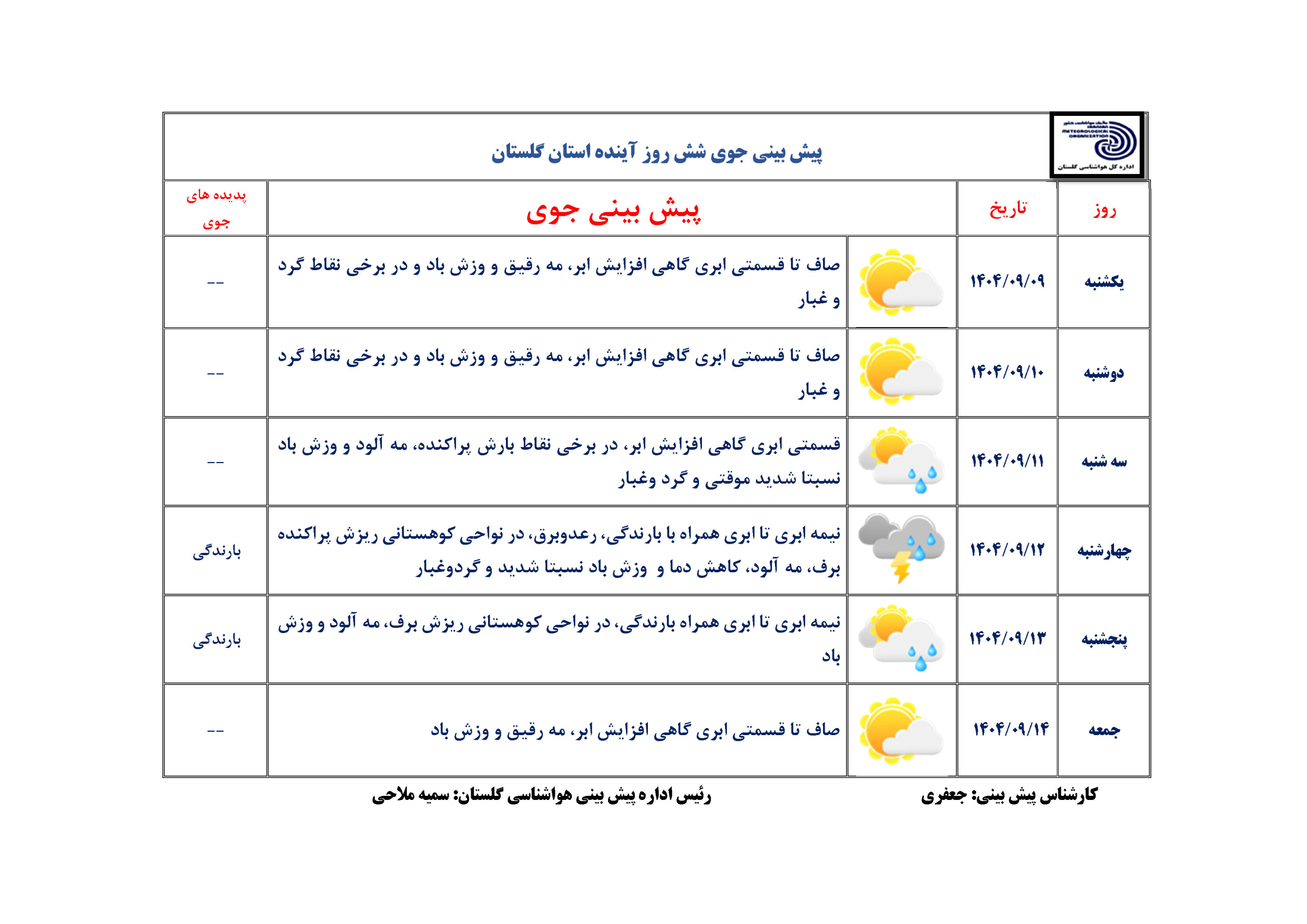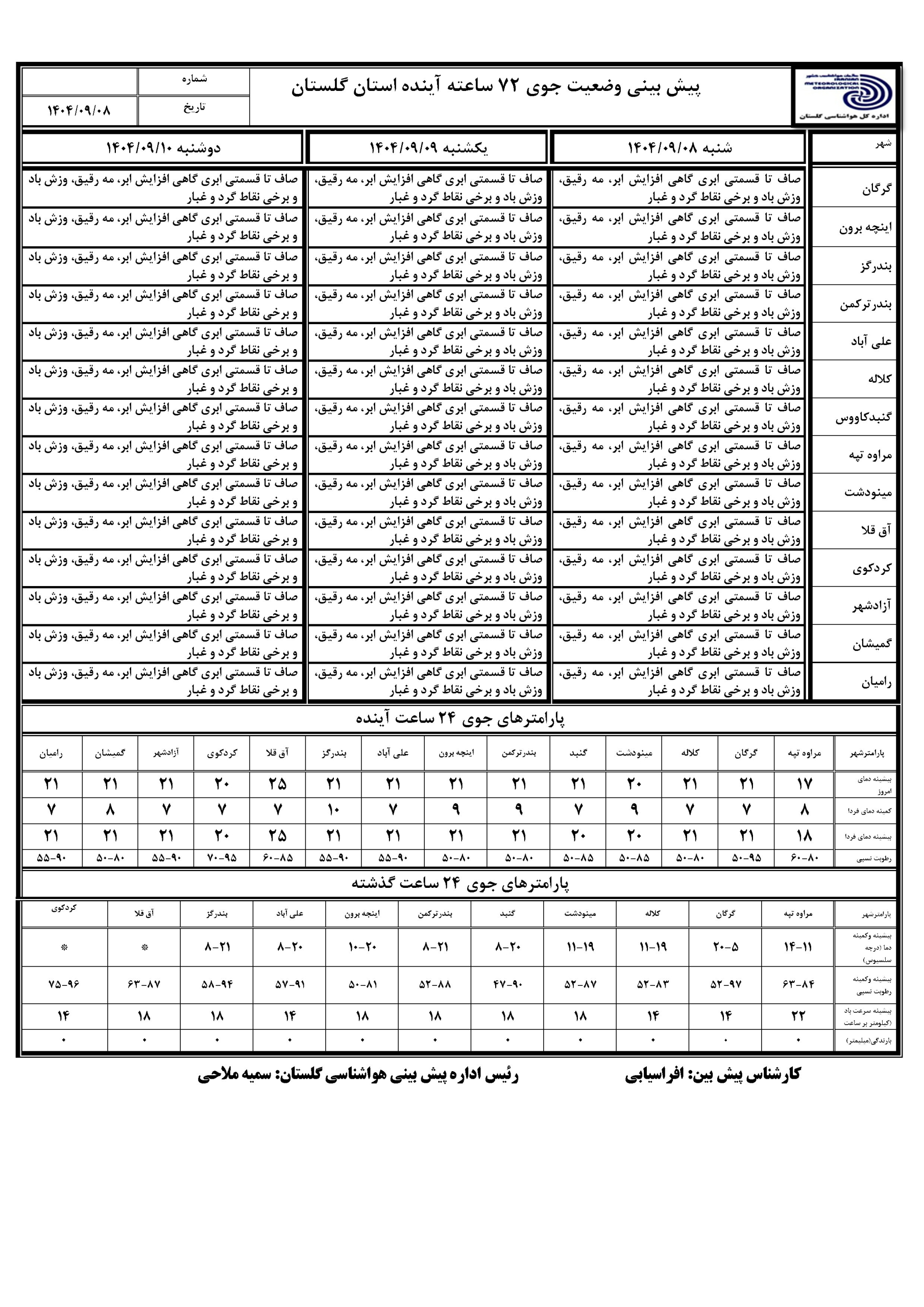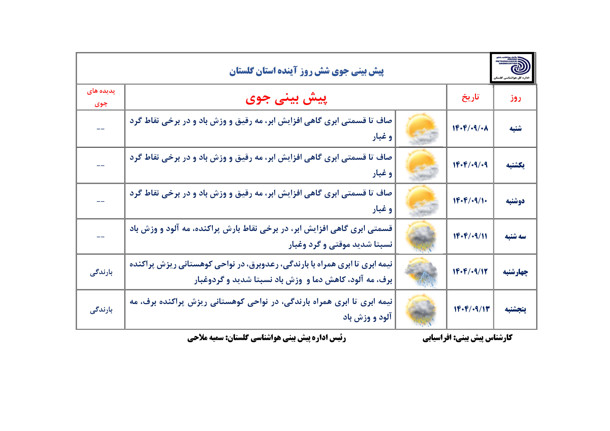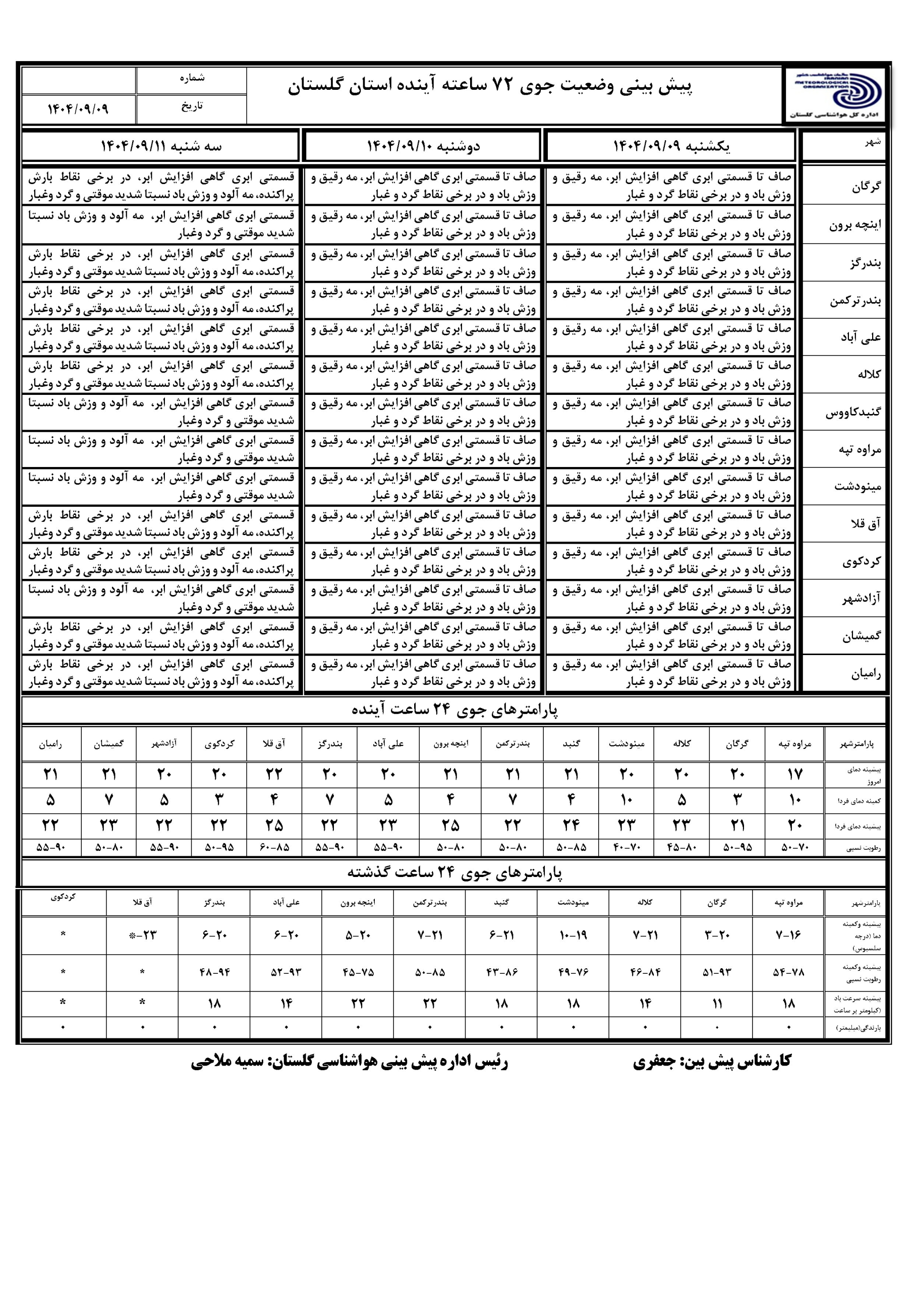 /0 دیدگاه/در پیش بینی دریایی/توسط چوگان واحد پیش بینیبولتن 5 وزه آلودگی شهرستان گرگان مورخ 1404/09/9