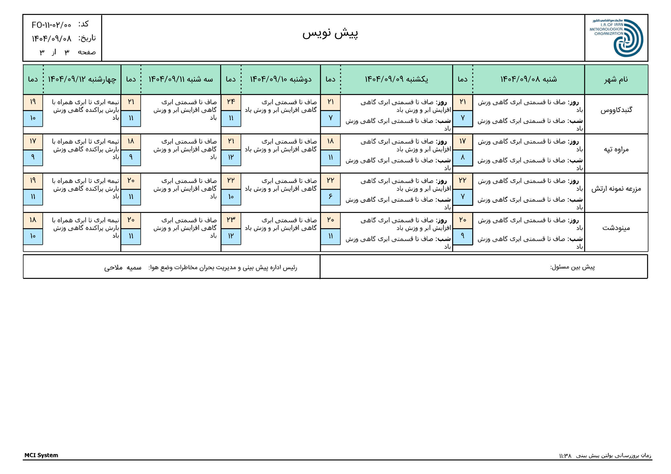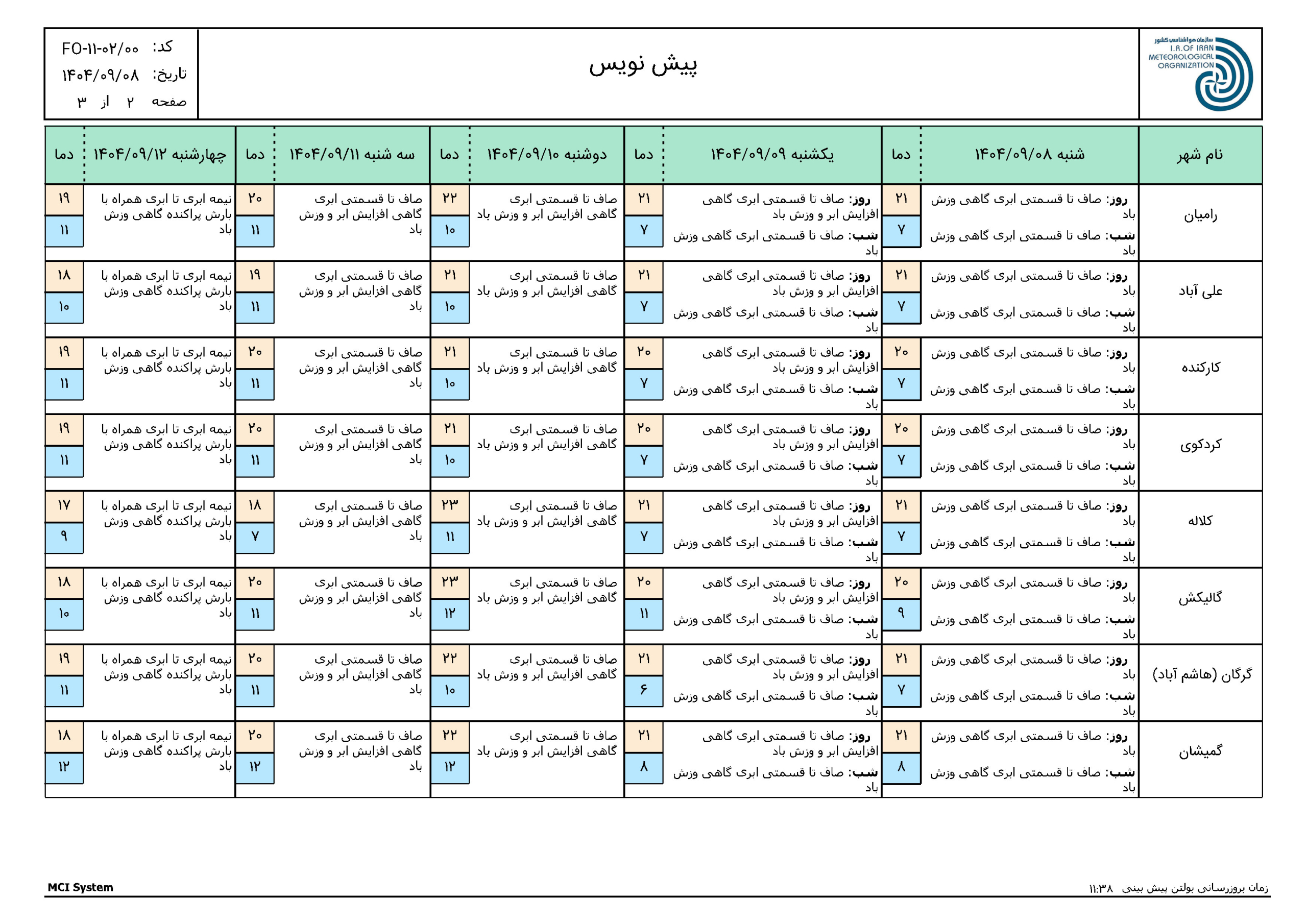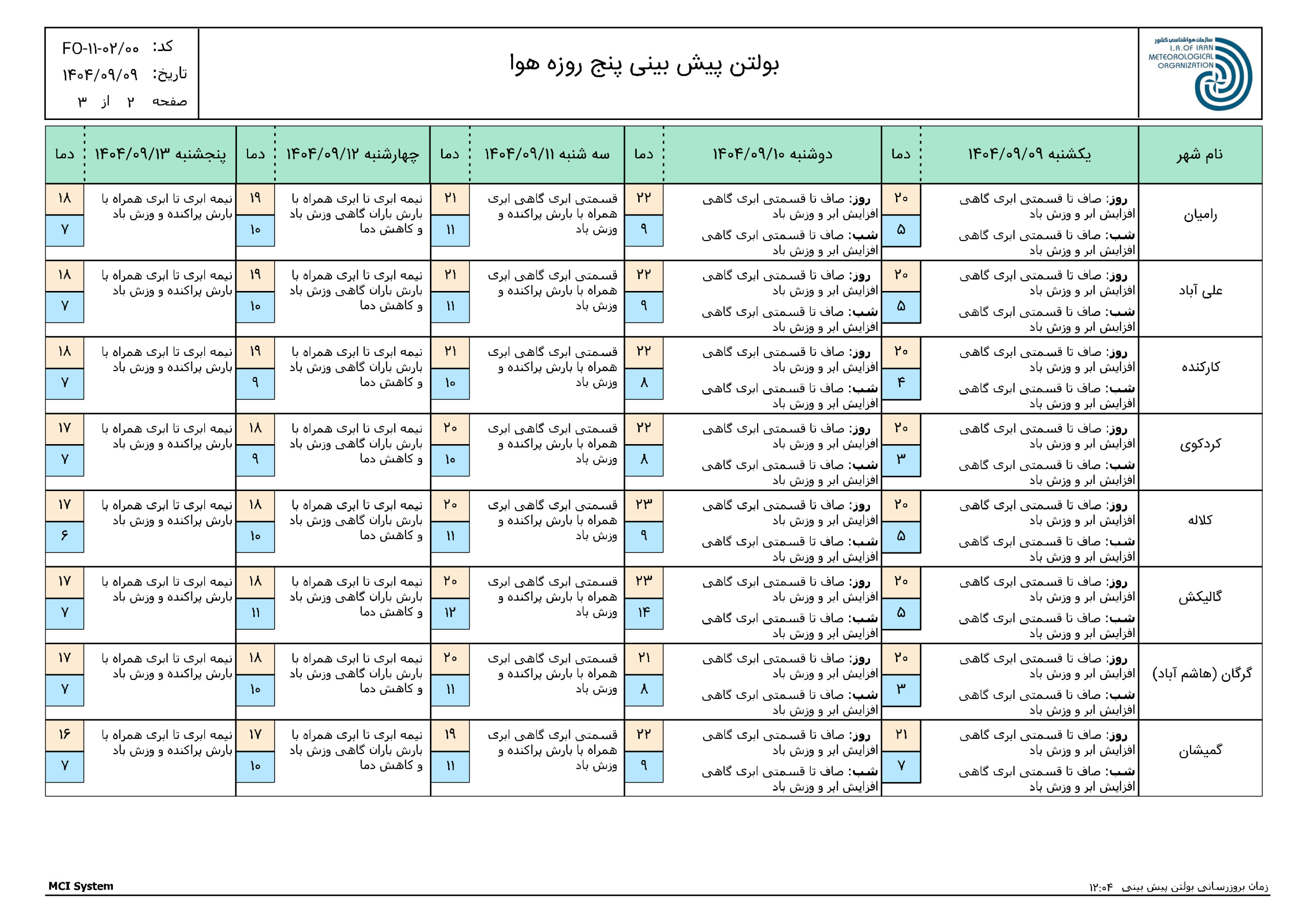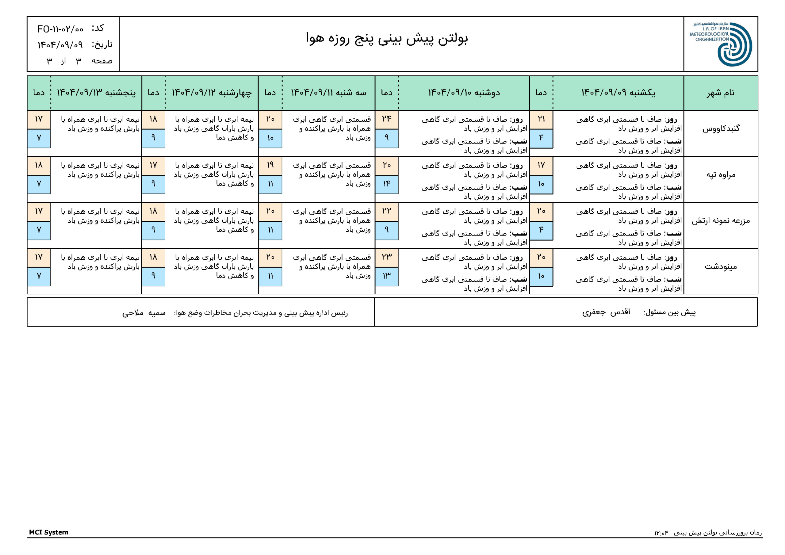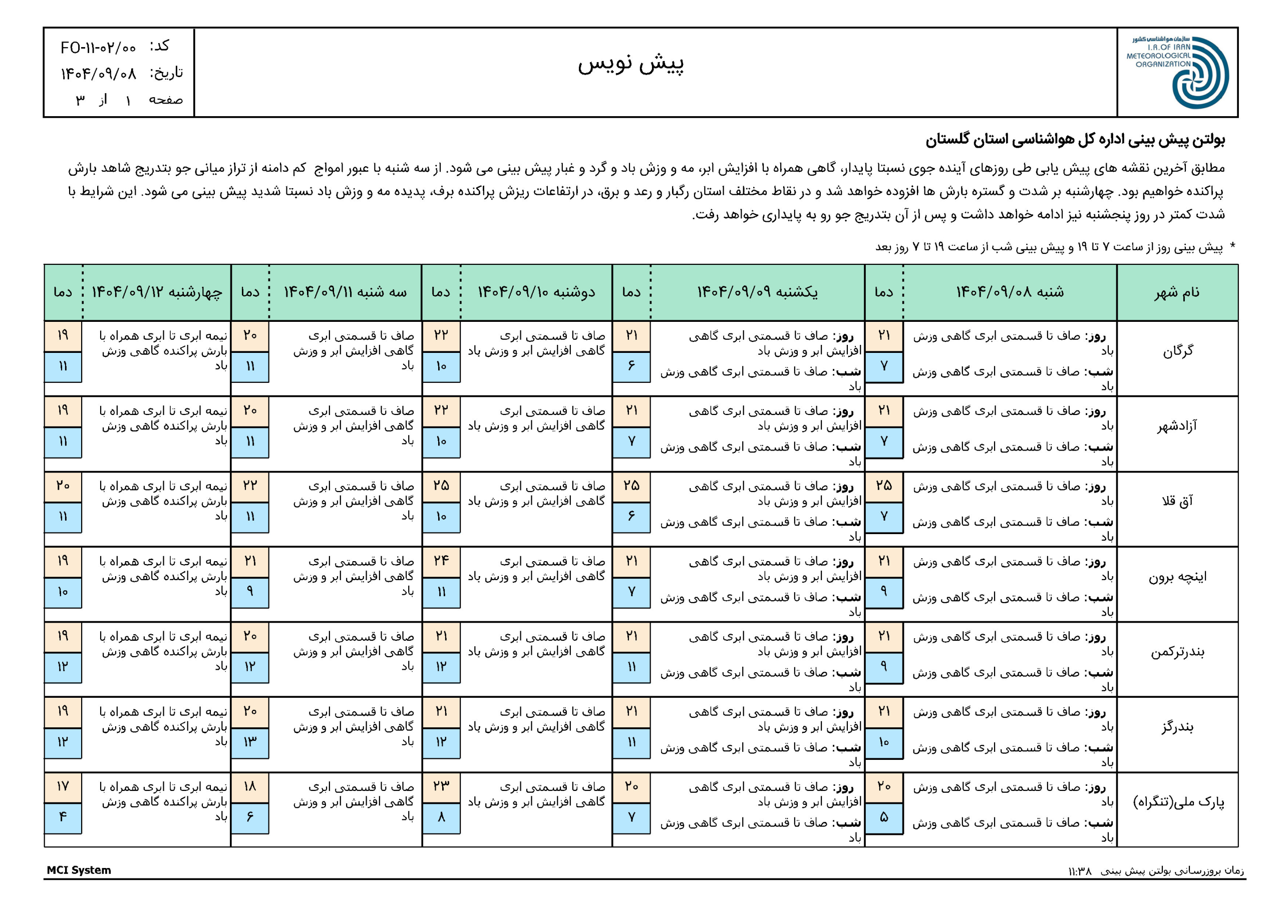 /0 دیدگاه/در پیش بینی دریایی/توسط چوگان واحد پیش بینیبولتن 5 وزه آلودگی شهرستان گرگان مورخ 1404/09/9