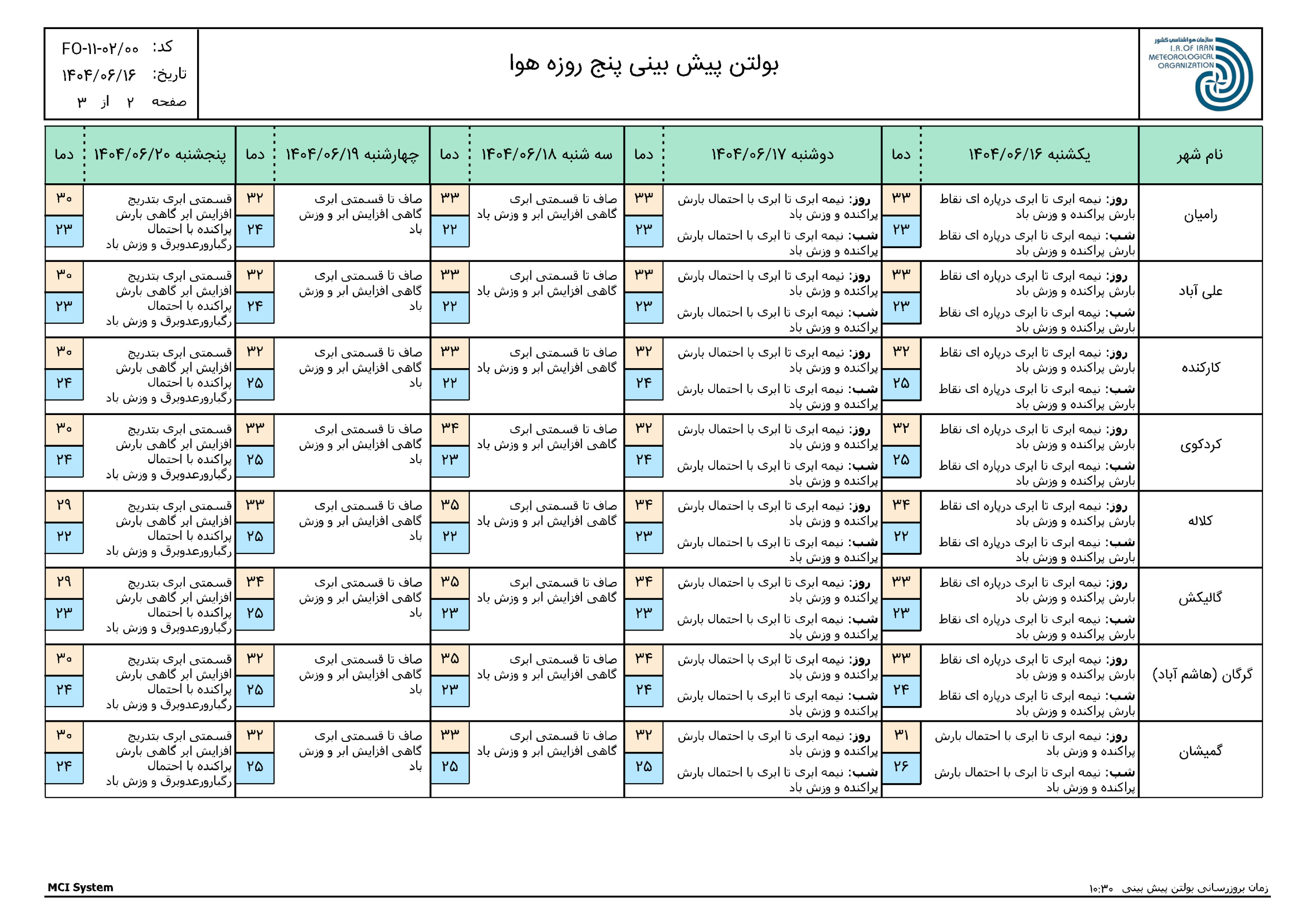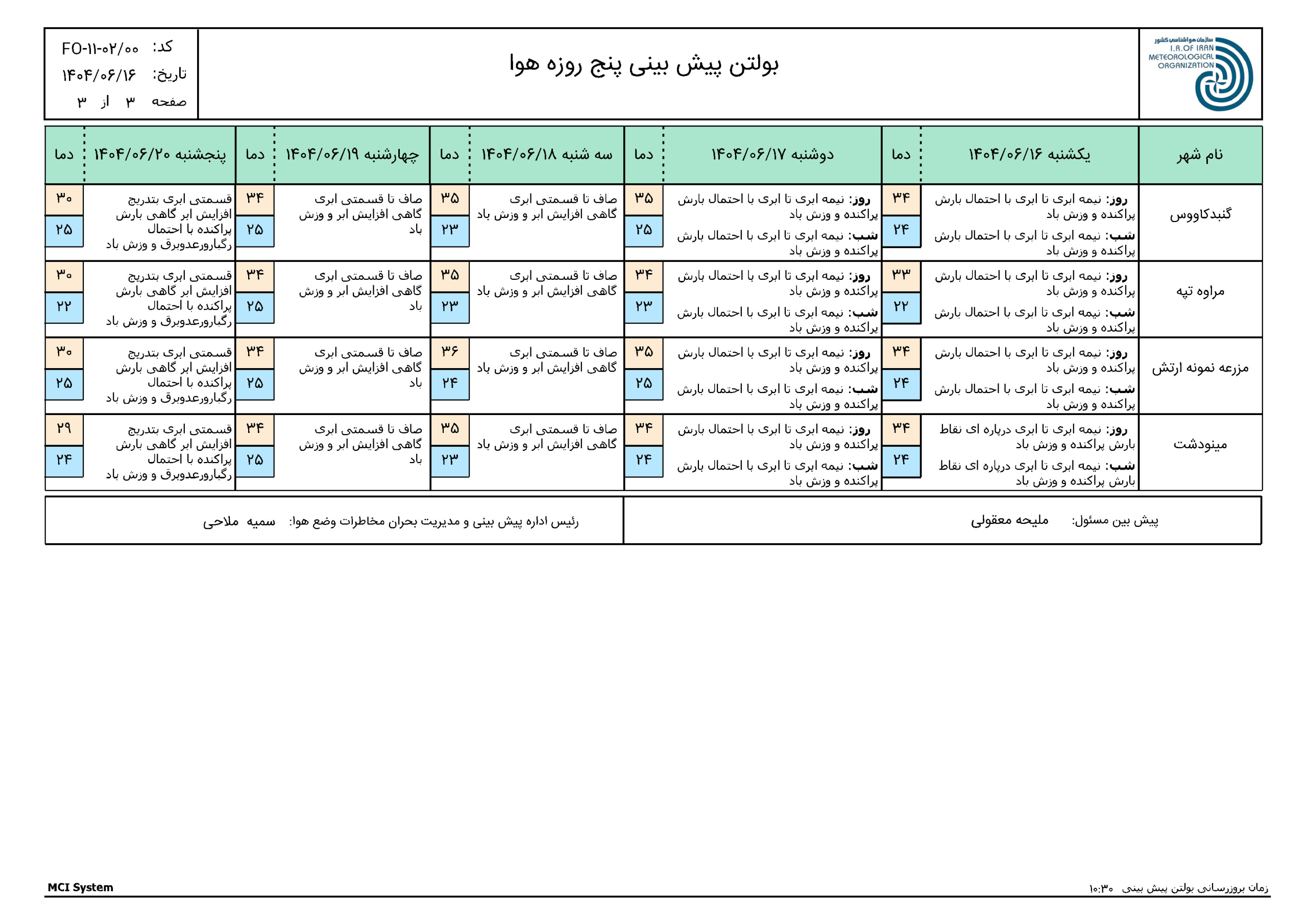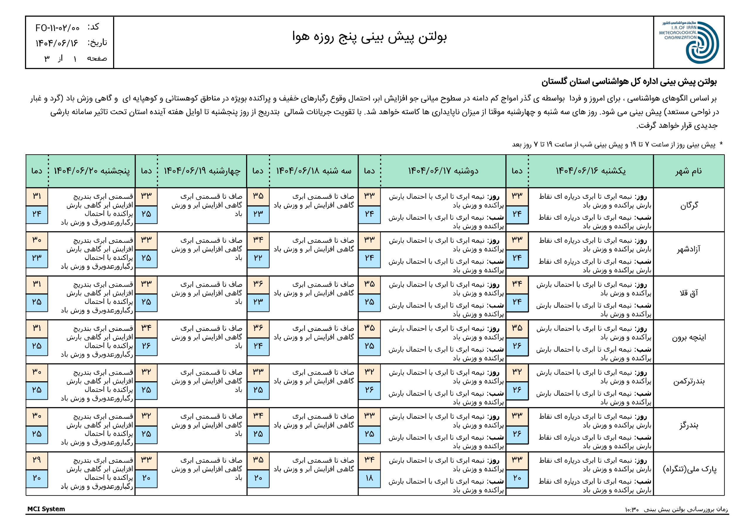 - بازديد رئيس سازمان مديريت و برنامهريزي گلستان از ادارهكل هواشناسي استان12 مهر 1404 - 2:42 ب.ظ